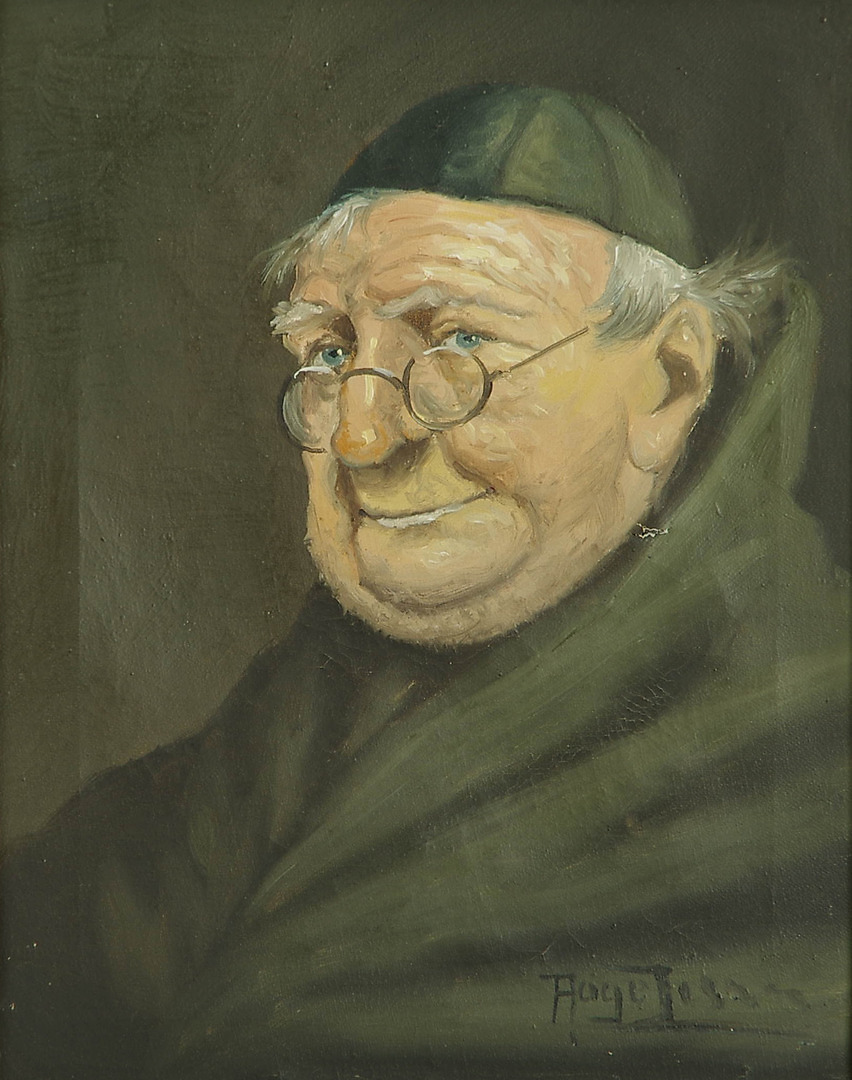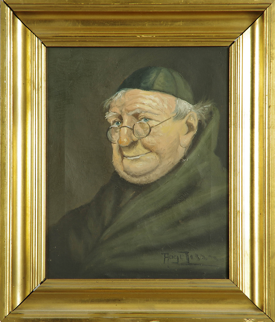 499187. AUGE JESSEN. Munk ,olja på duk, signerad.