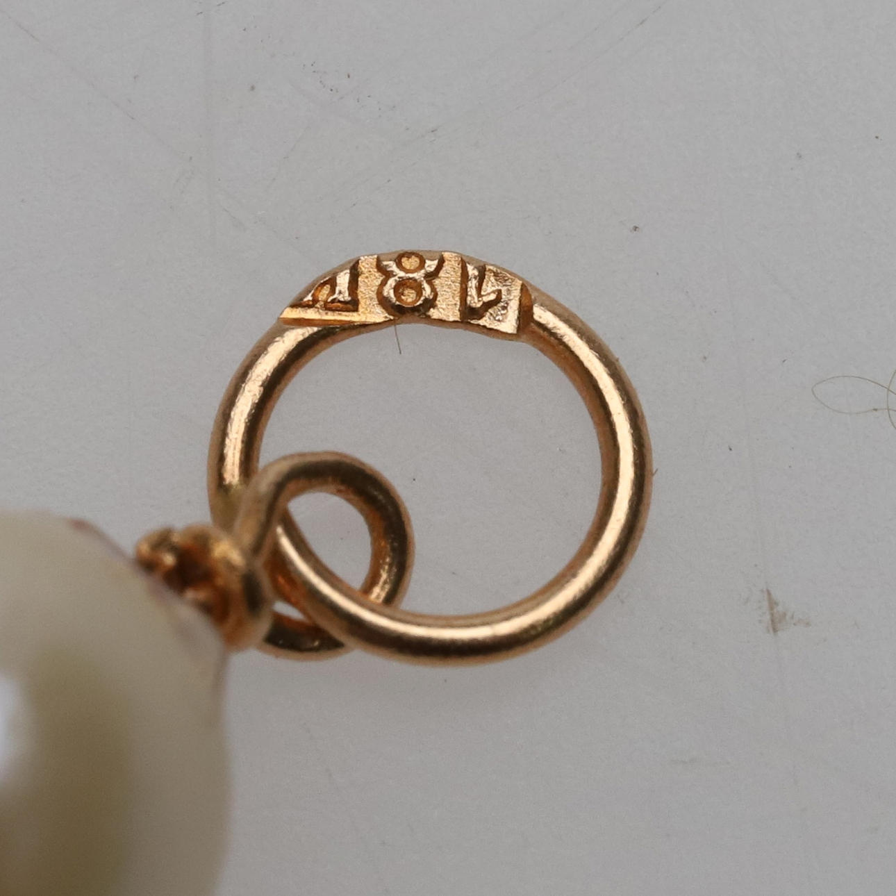 4992051. Hängen, 2 st 18K guld med pärlor.