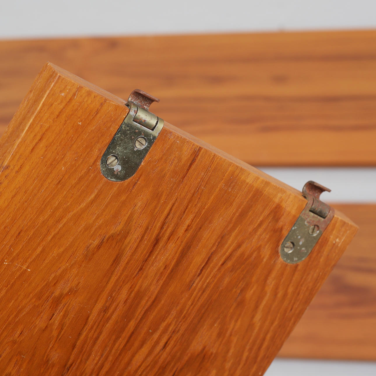 Hyllplan med repor, fläckar, beslag med rost Gavlar med fläckar, märken, skador på färg.