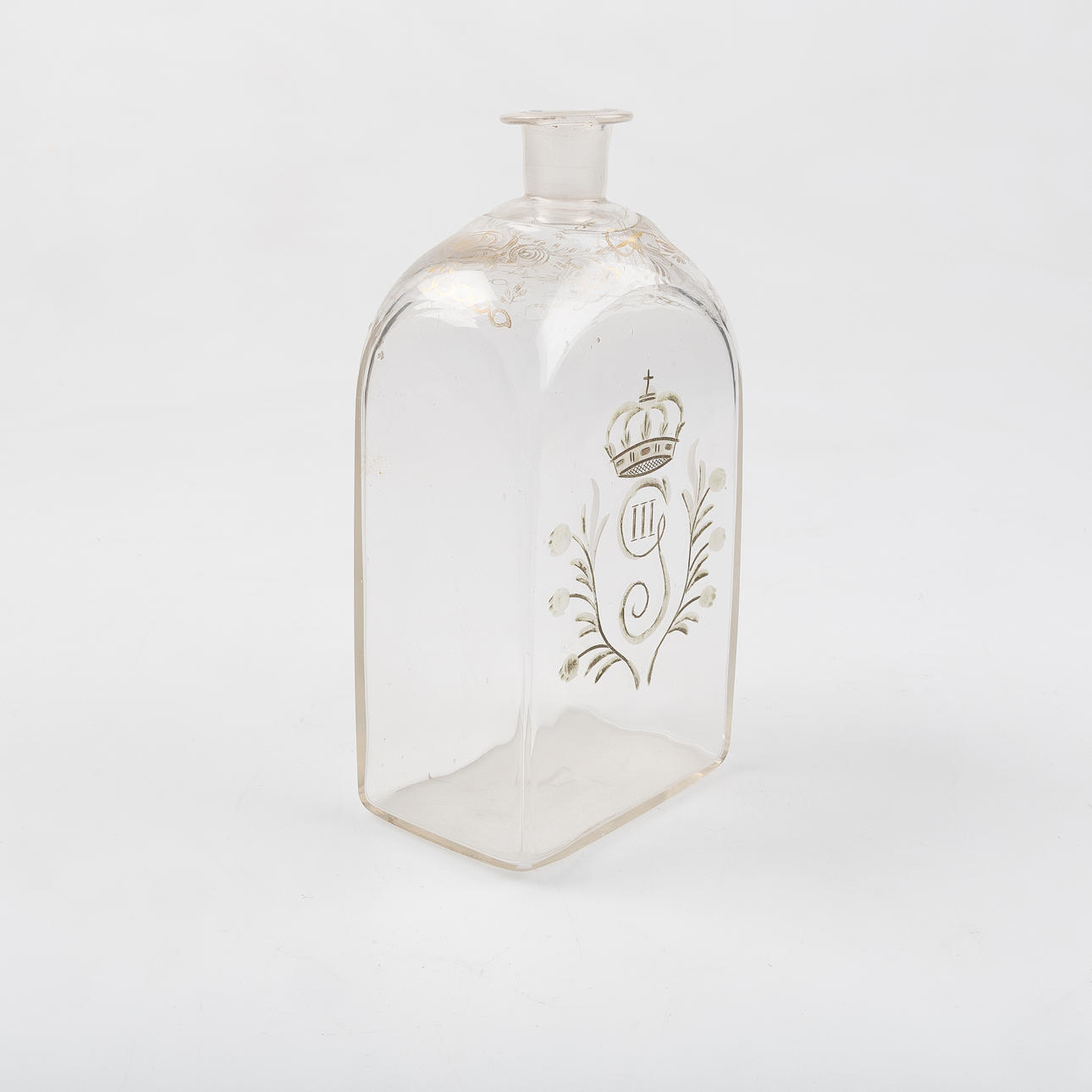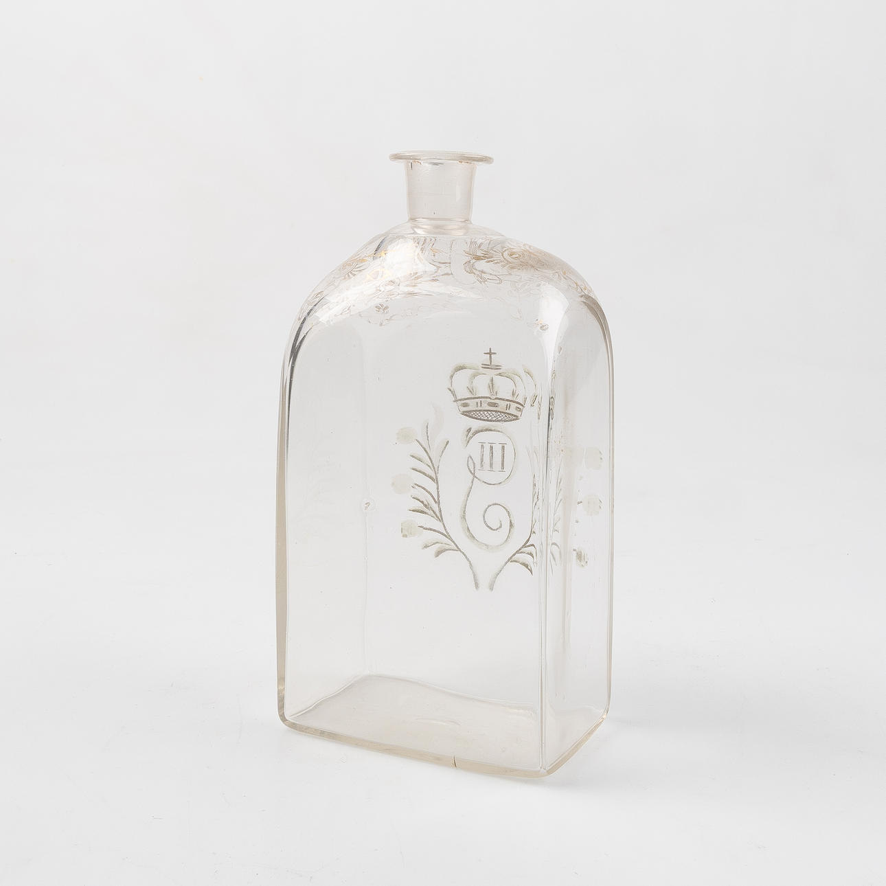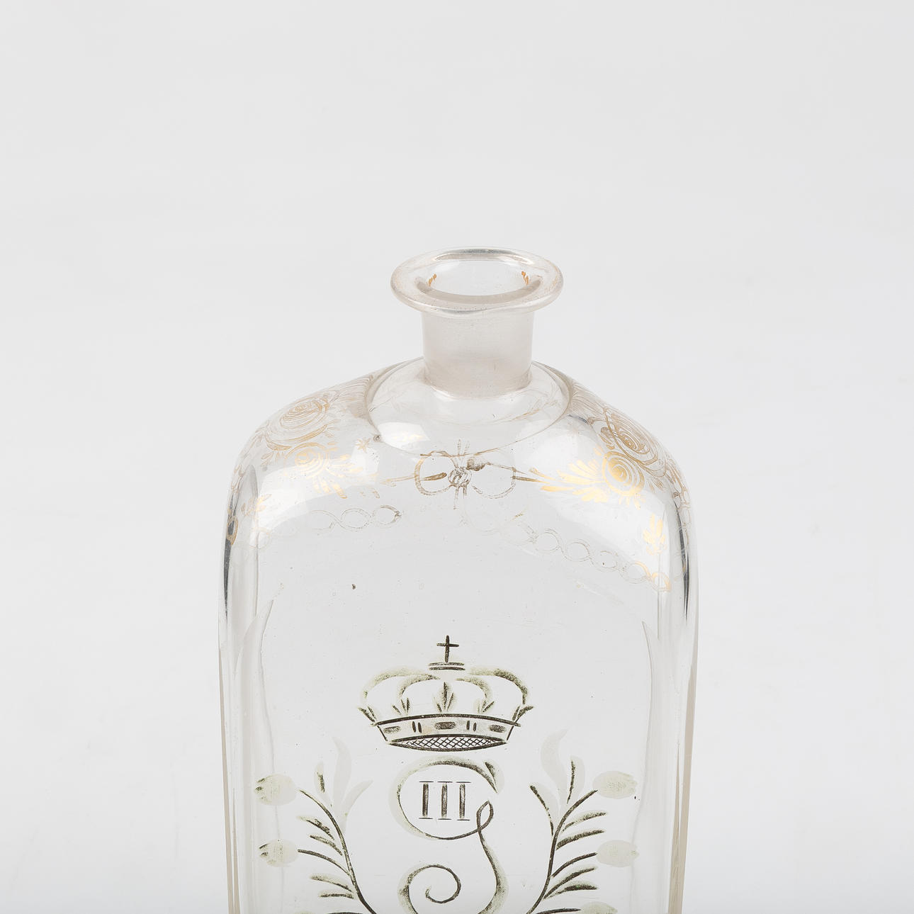4992993. BRÄNNVINSFLASKA, 1800-tal, med Gustav III:e monogram.