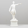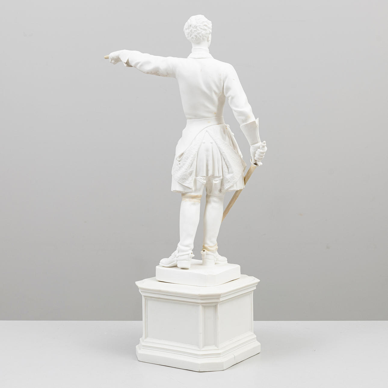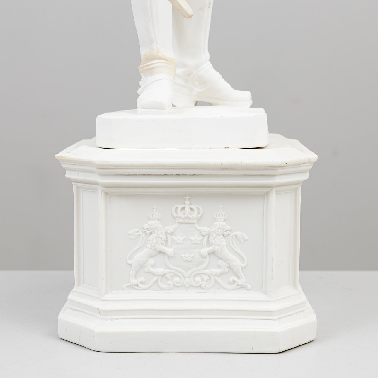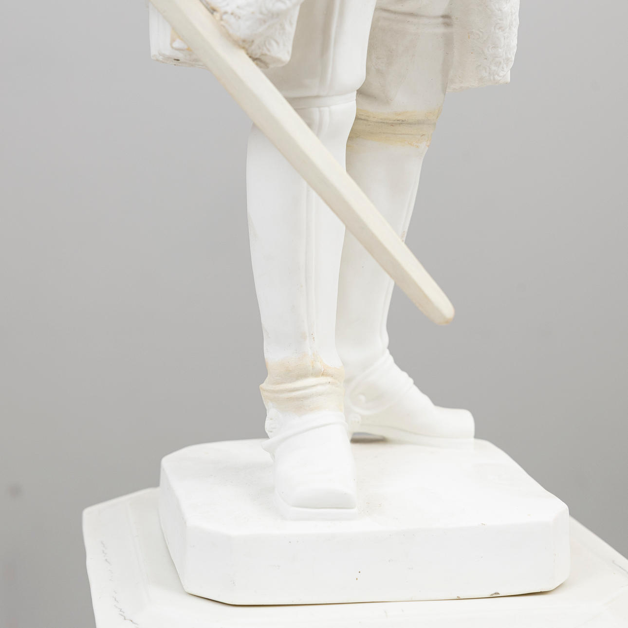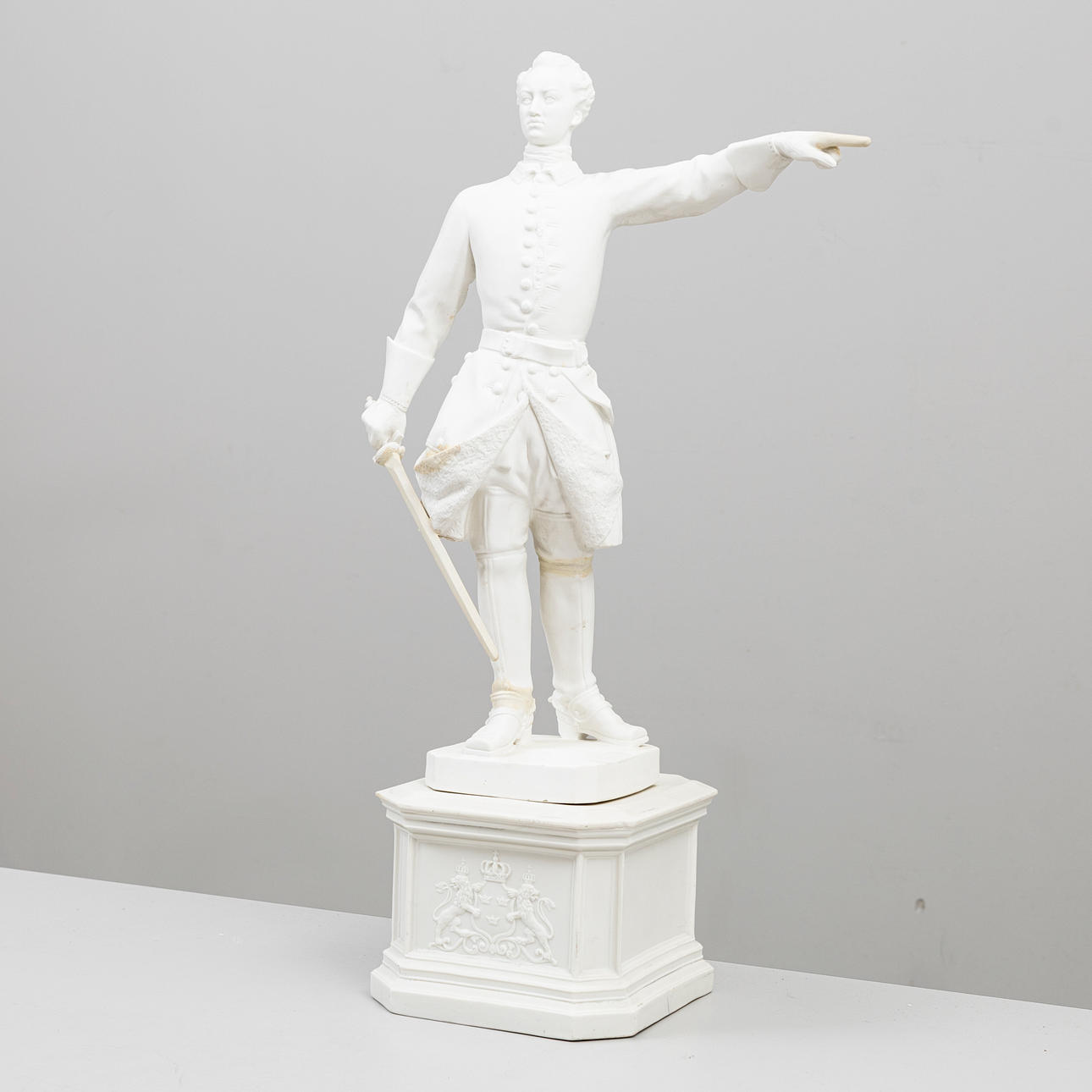 Lagningar, retuscher, sporrar saknas. Märken. Sockel med nagg och sprickor.