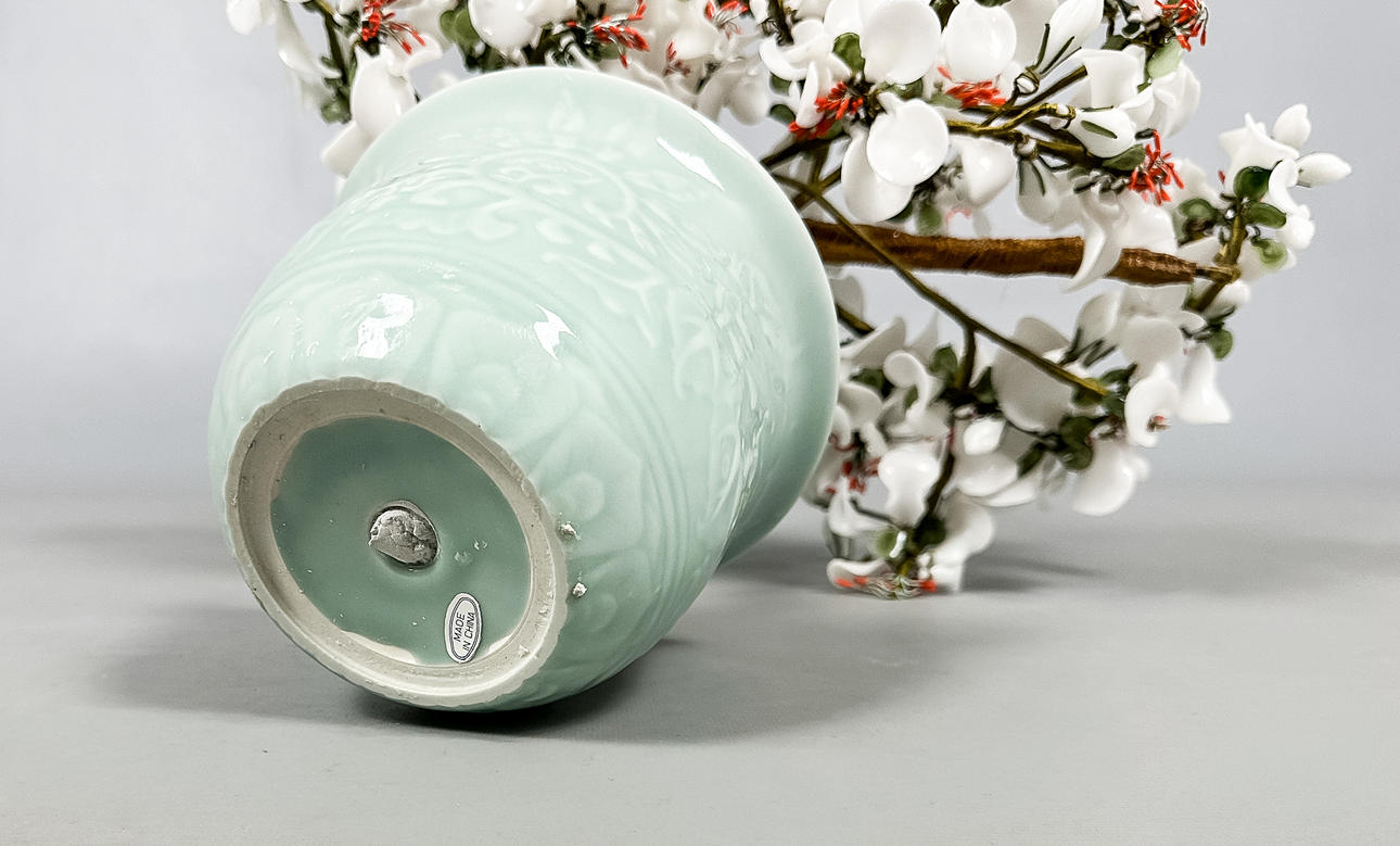 4993544. PRYDNADSTRÄ, "Bonsaiträd", porslin, plast, 1900-tal.