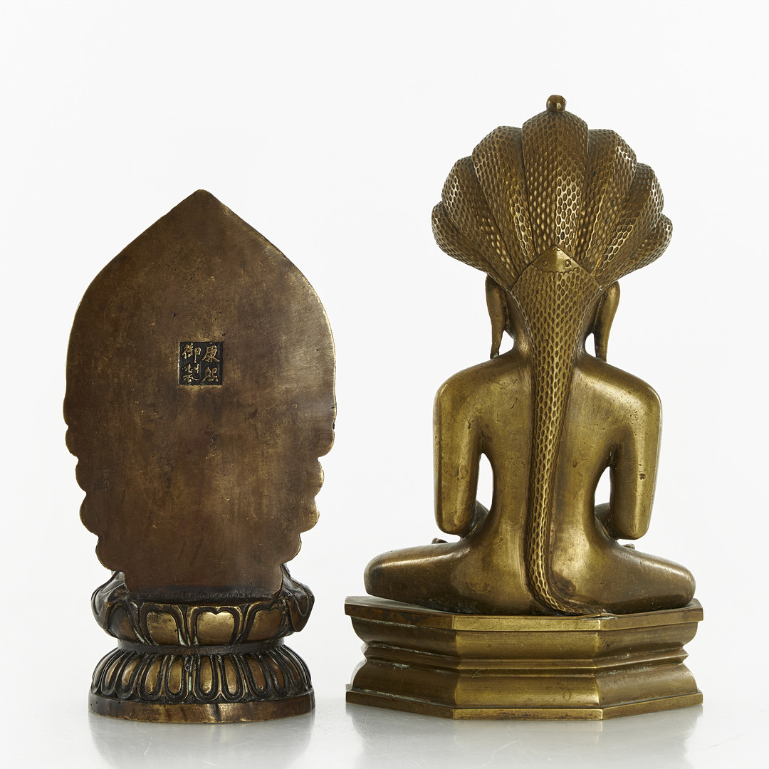 4993949. BUDDHA, 2 st, koppar/bronslegering, 1900-tal.