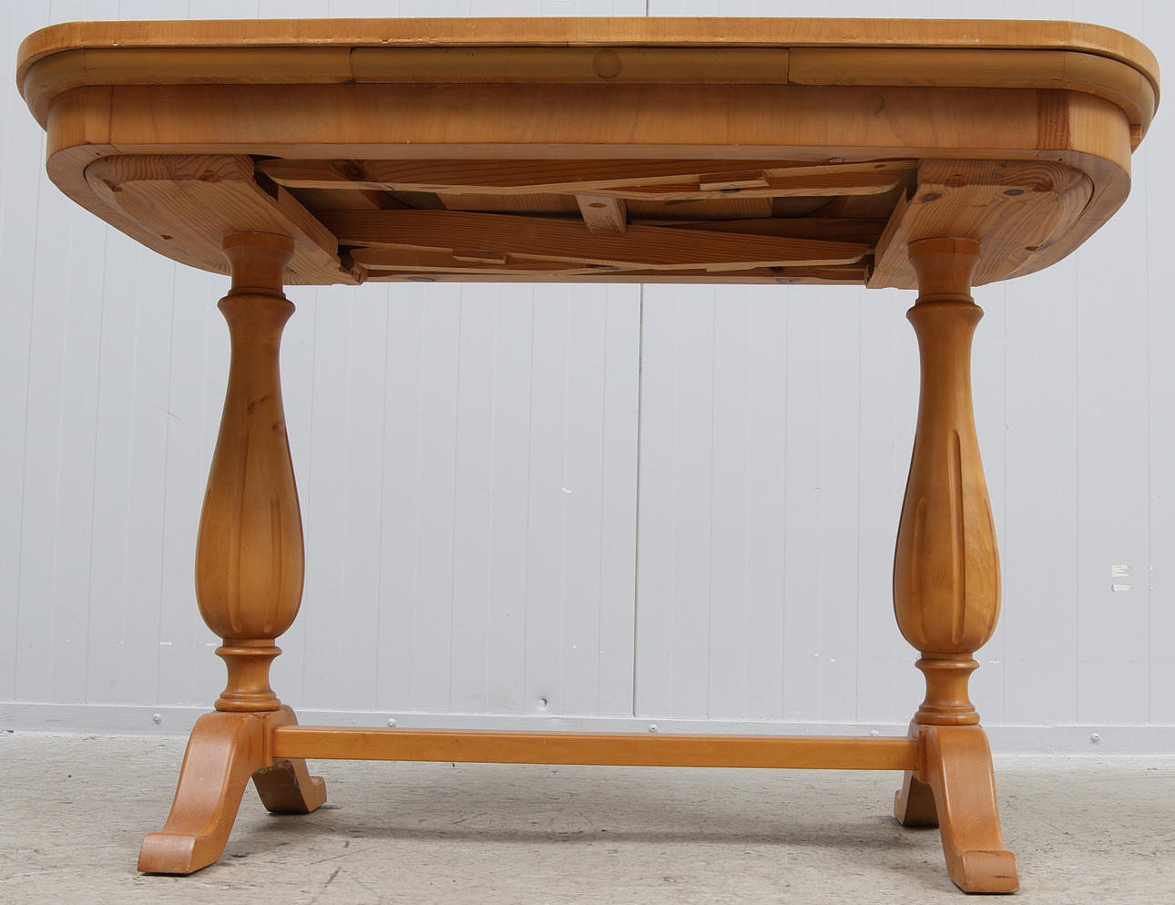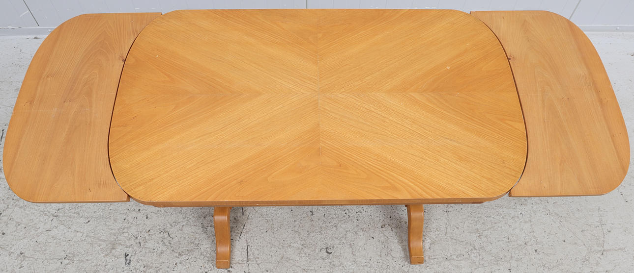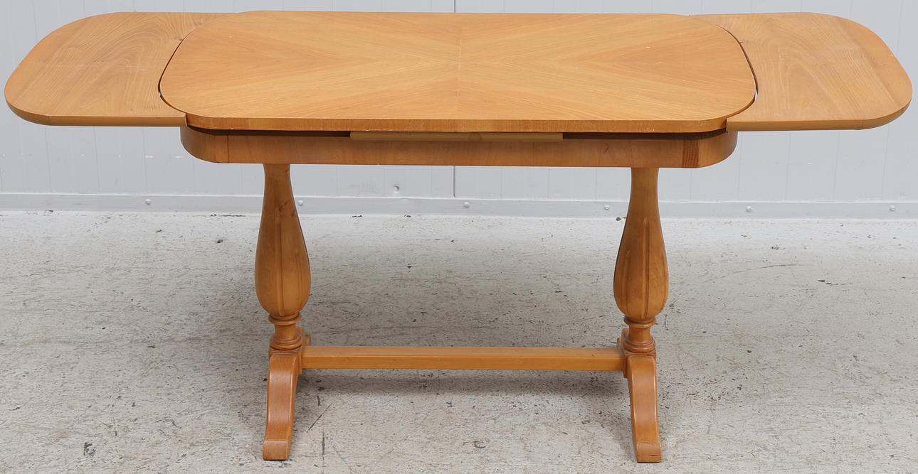 Med utdragbara skivor. Mått med skivor ca 55x141 cm. Mått utan skivor ca 55x94 cm. Höjd ca 64 cm.