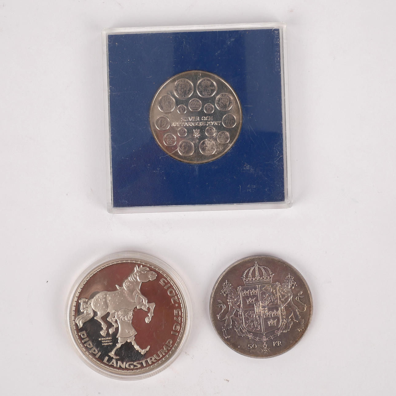 Carl XVI Gustaf Drottning Silvia 50 kr 1976. Silver 925.
