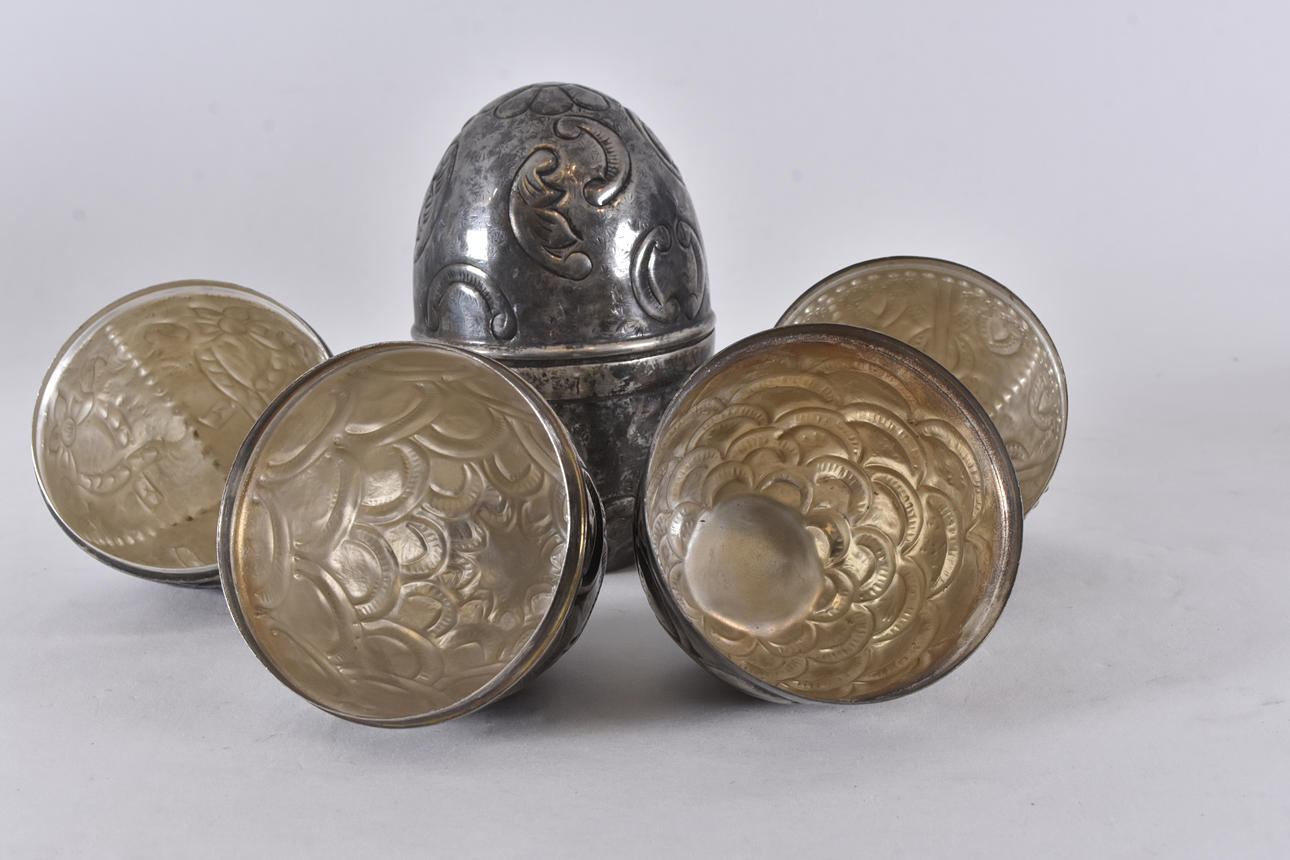 4995423. ÄGG, 3-stycken, nysilver, 1900-tal.