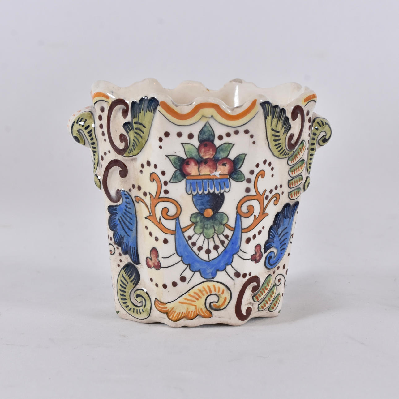 Övre kant med glasyrbortfal.
