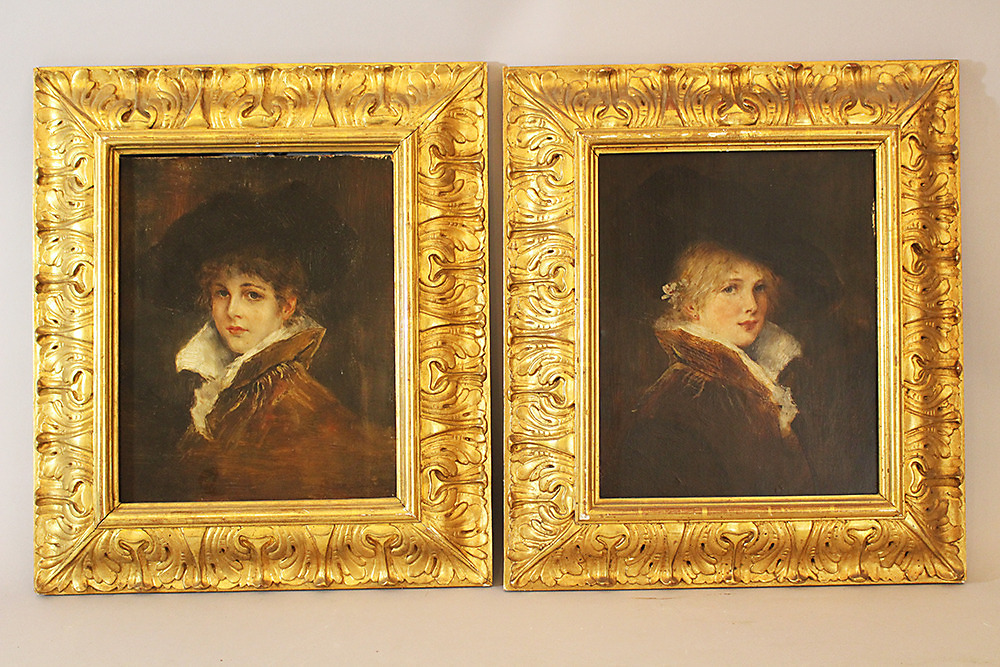499552. HANS MAKART. HANS KRETS. 4 ideala porträtt, oljemålningar.