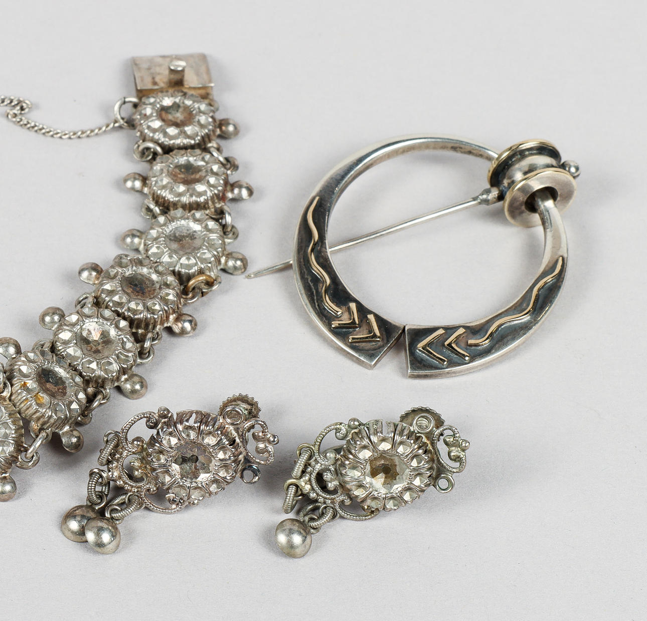 4995534. SMYCKESET 4 delar silver samt dräktbrosch silver.