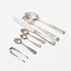 Matgaffel, matsked och matkniv "Rosenholm", l. 17,5-20 cm. 6+5+1 kaffe/mockaskedar 1 sockertång.