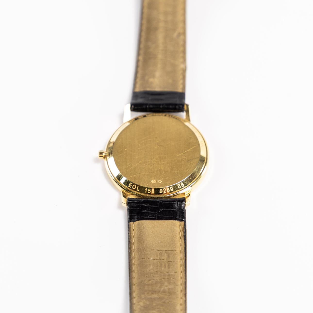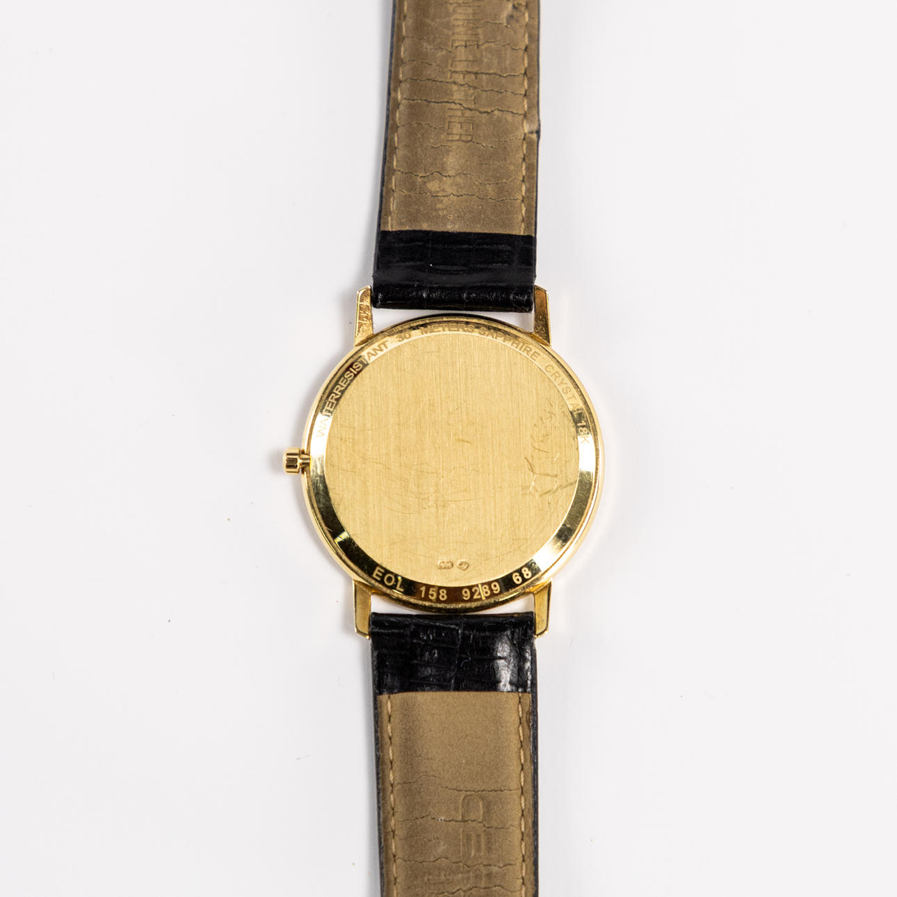 Herrarmbandsur, 34 mm, quartz, originalrem i svart läder, kommer i originalask, askens mått ca 22 x 7 x 4 cm.