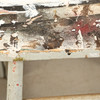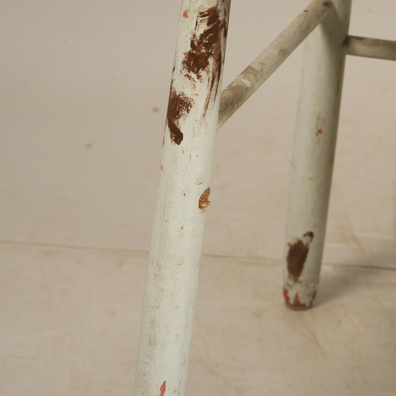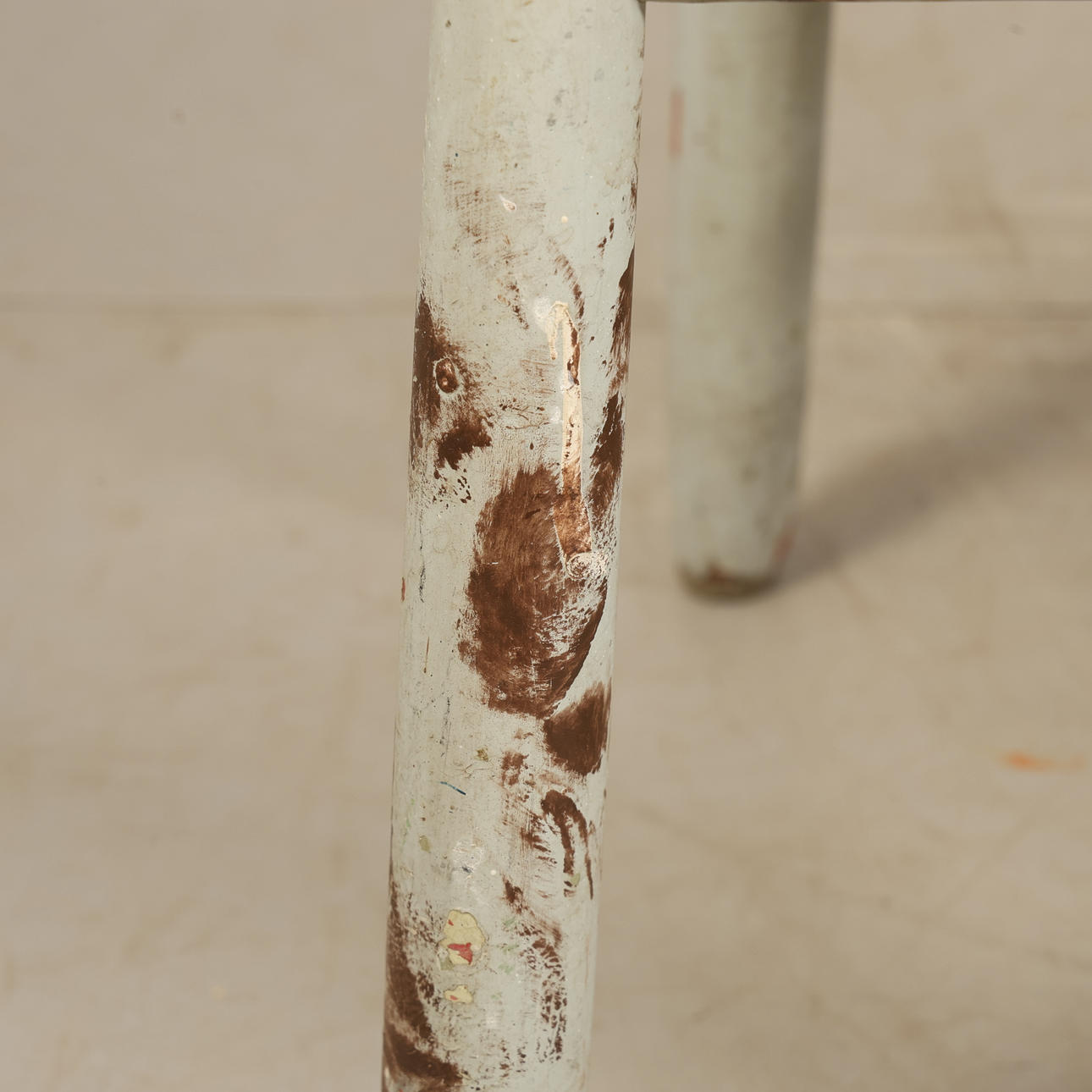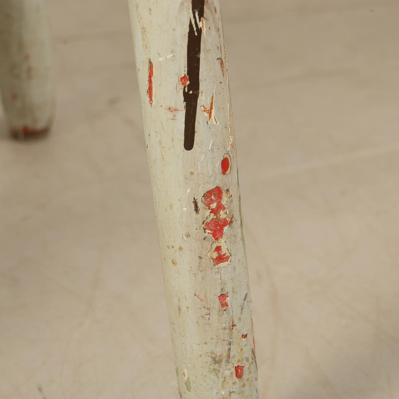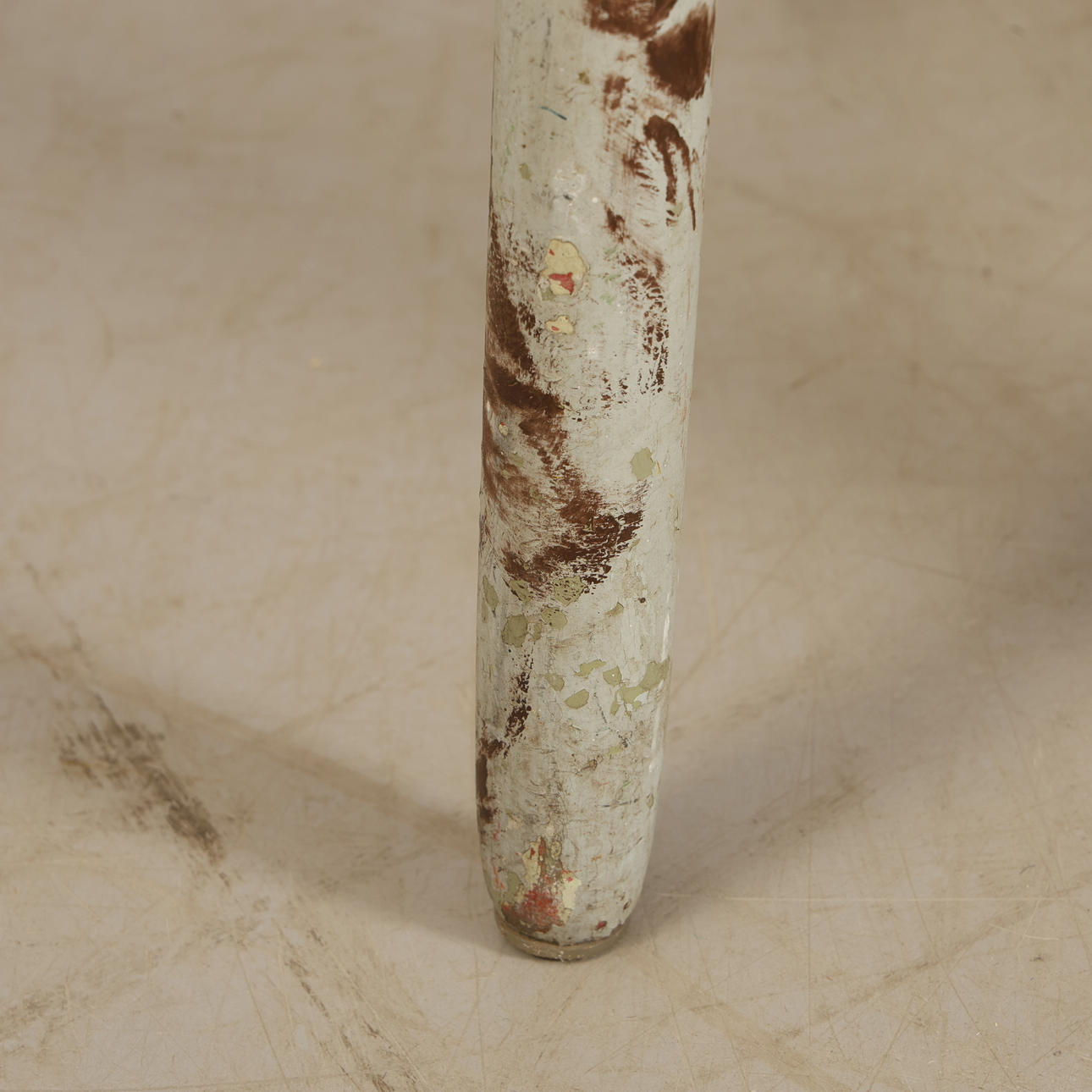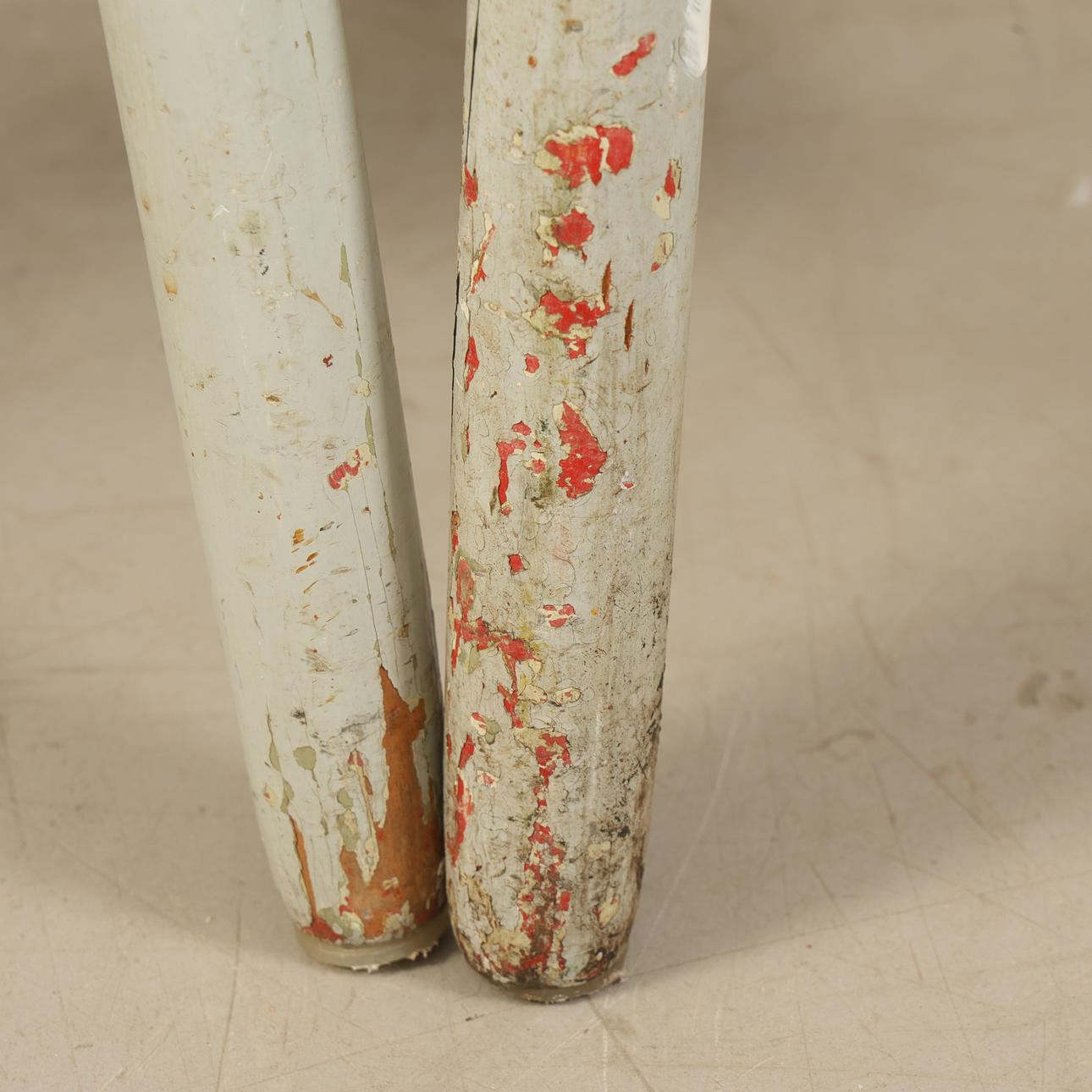 Slitage, nött, märken, lösa ben. Fotpinne saknas.