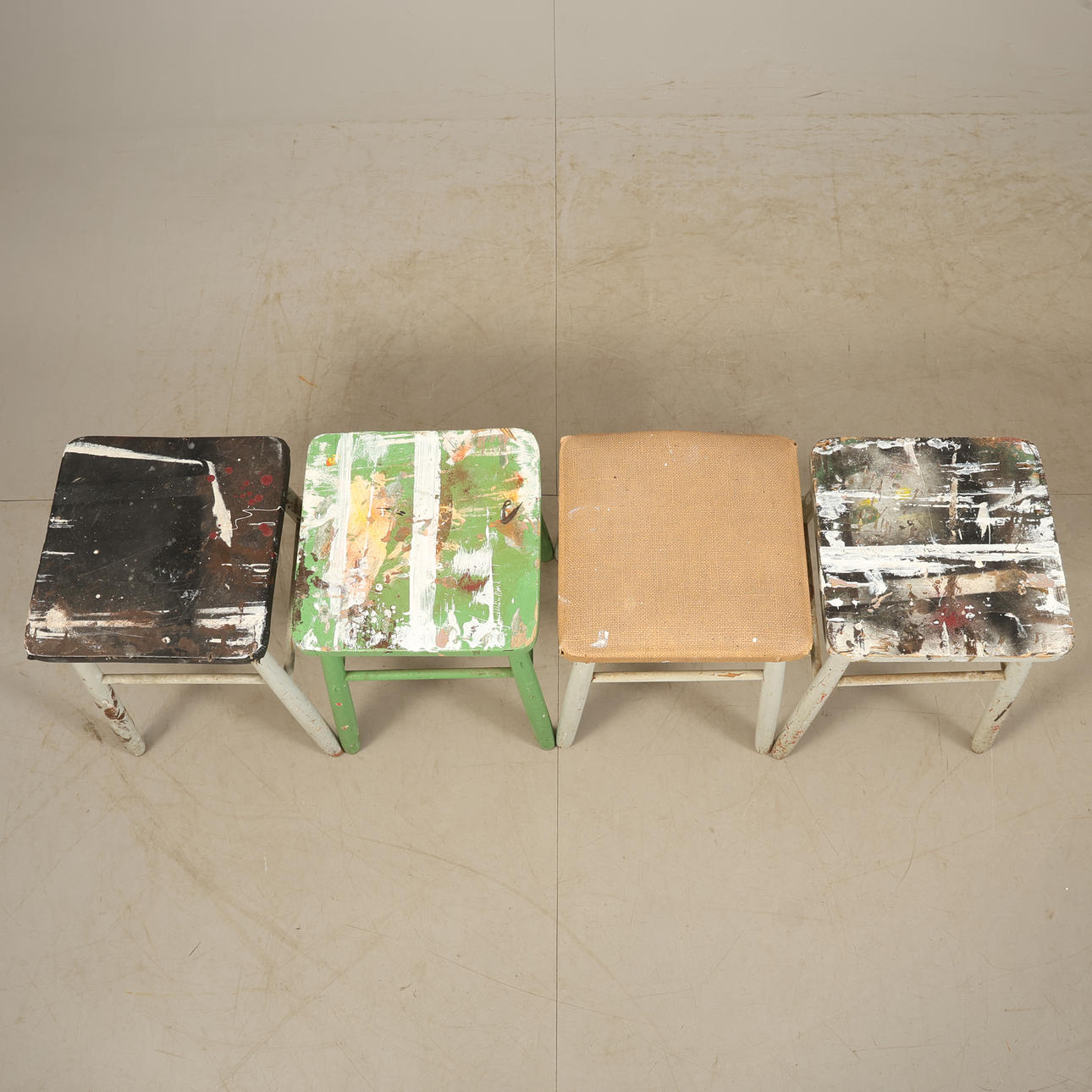 Ca sitthöjd 45 cm. Bemålade med olika färger.