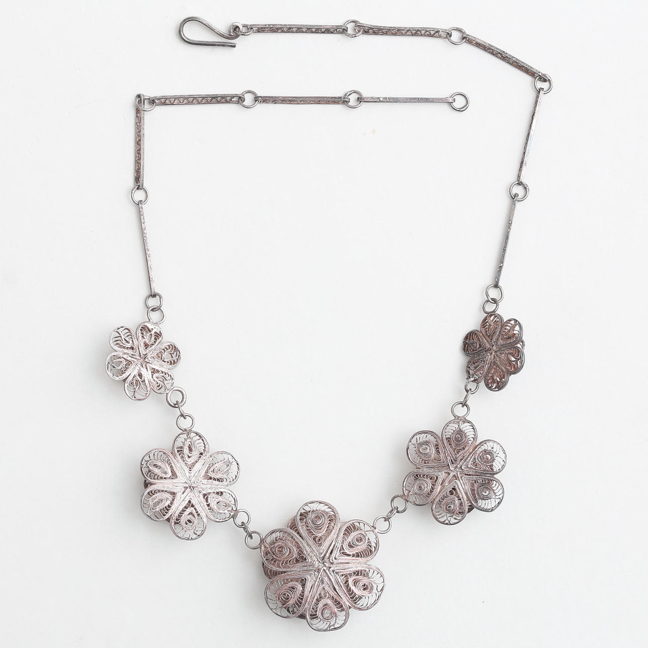 4997021. COLLIER, filigran/ silver i form av blommor.