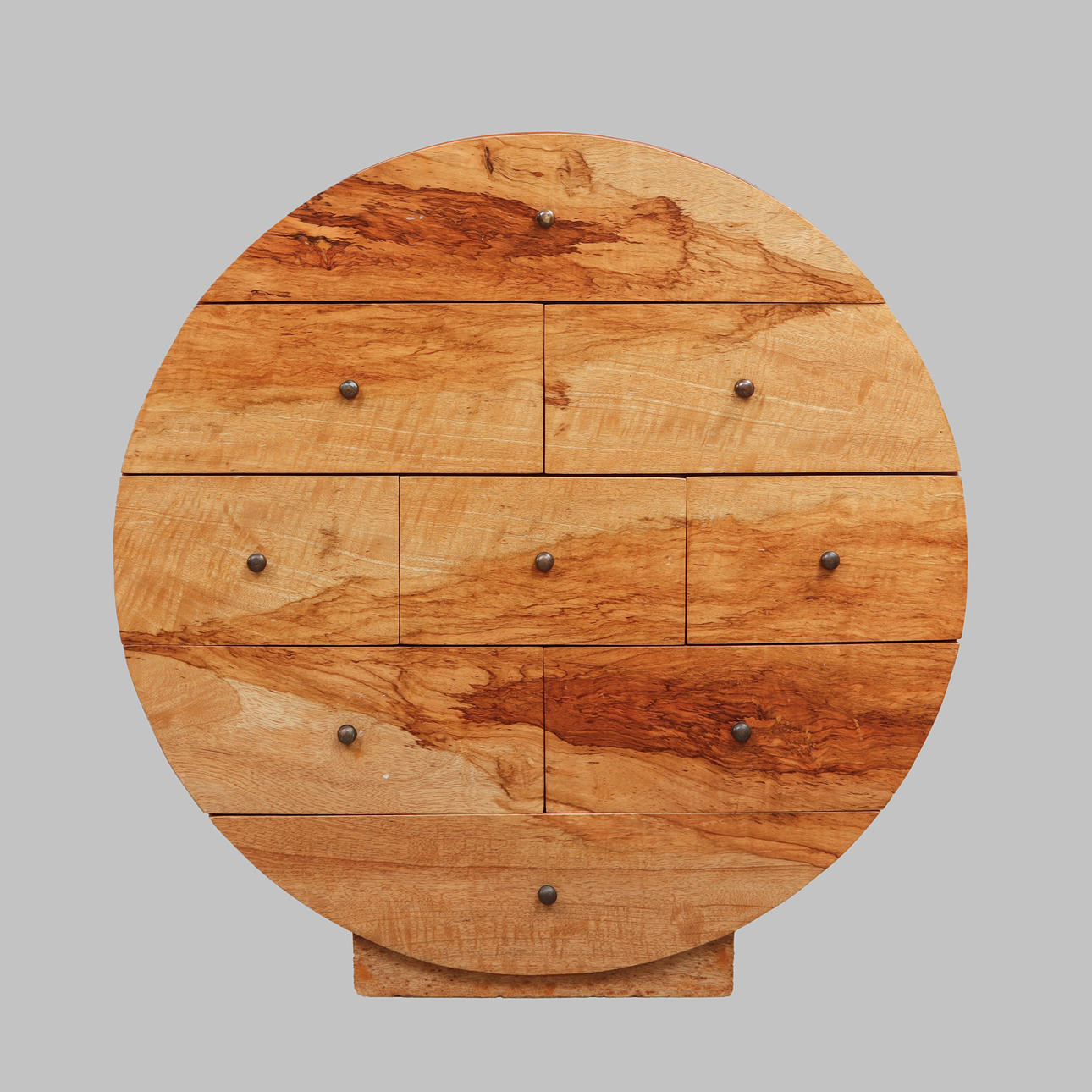 Diameter ca 95 cm, djup ca 46 cm, 9 lådor.