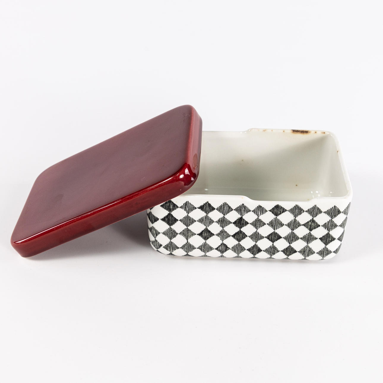 Marianne Westman, smörburk, "Red Top", Rörstrand, mått 17x11x7,5 cm.
