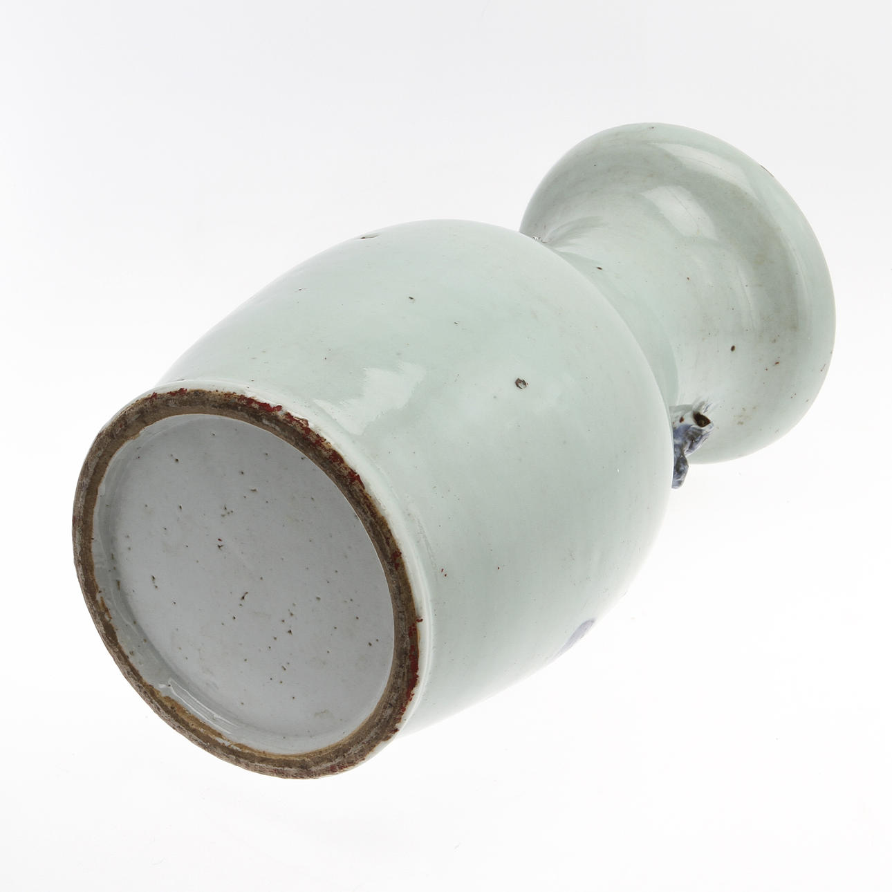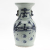 Dekor av figurscen i underglasyrblått. Höjd 33 cm.