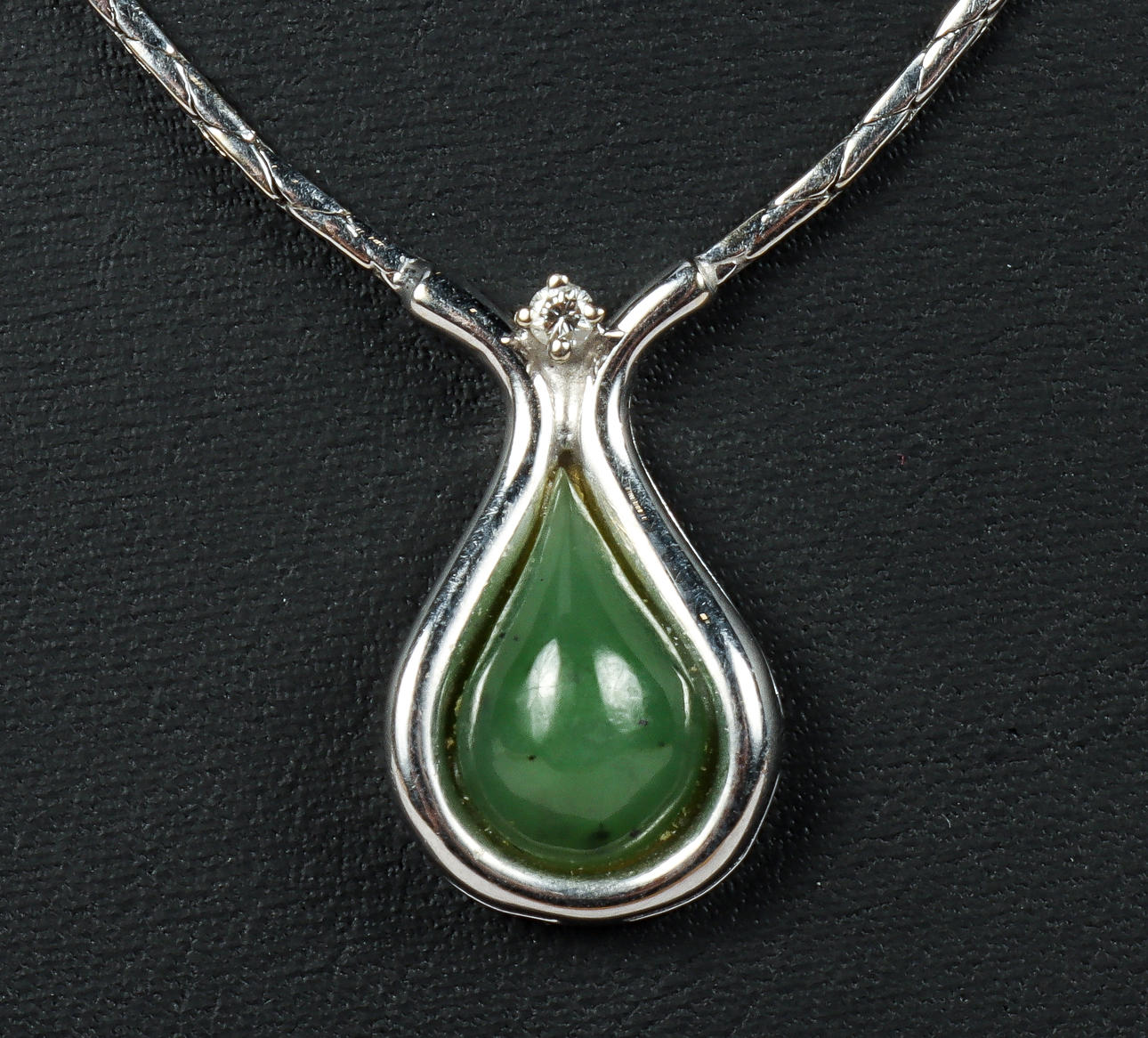 4998857. COLLIER, 18k vitguld med cabochonslipad jade.