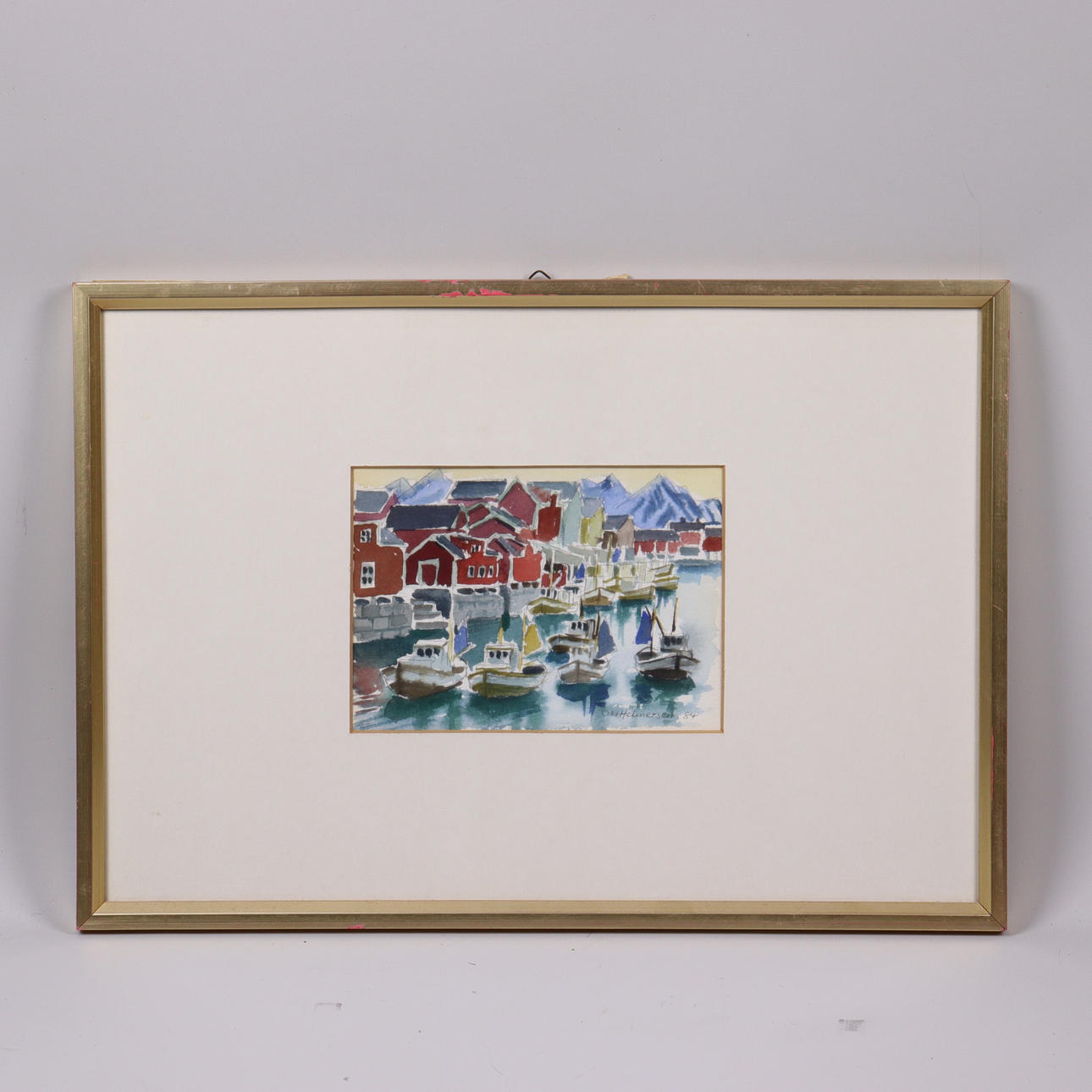 ODD HELMERSEN. akvarell, "Stamsund".