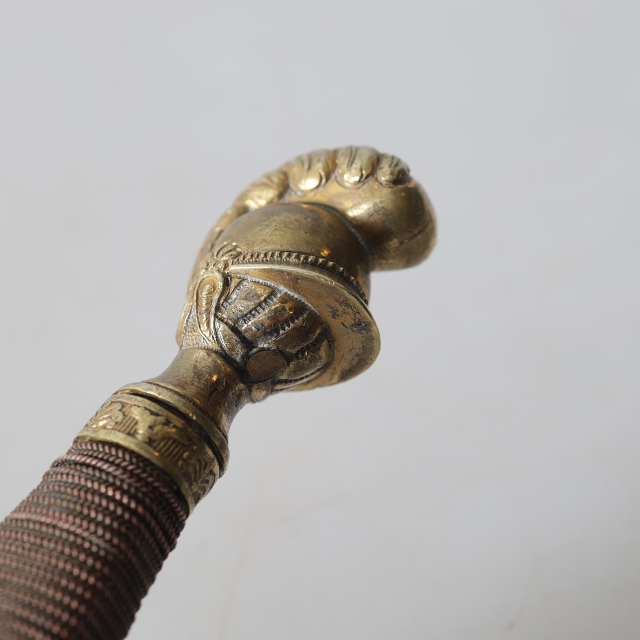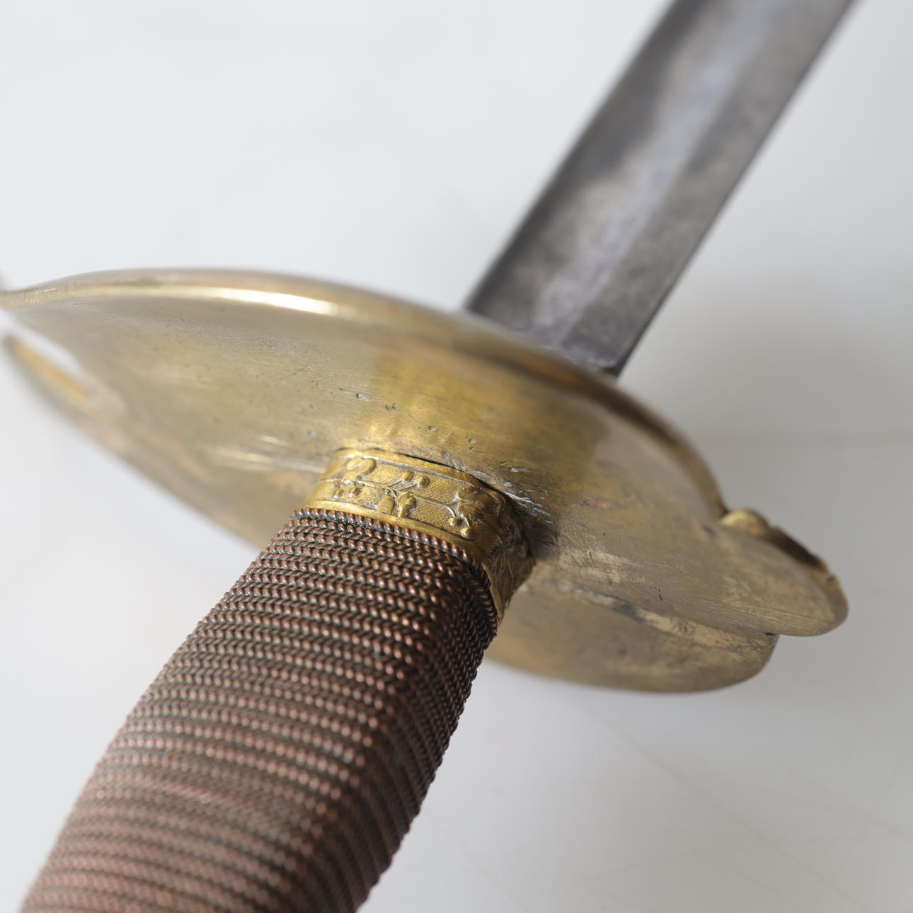 Knapp och parerstång i mässing. Klinga av stål.