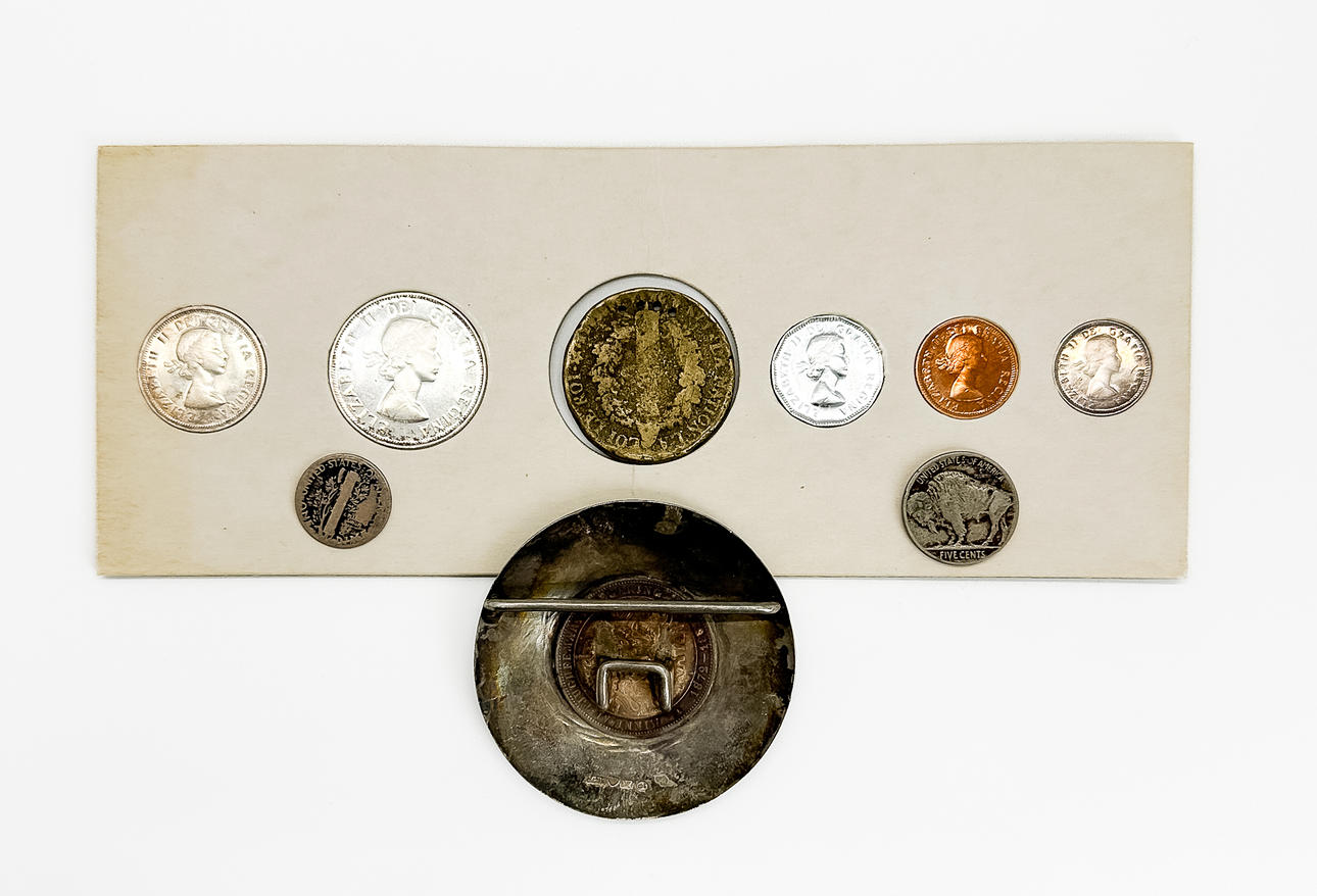 Silvermynt monterat i silverspänne. (vikt: 36gram)