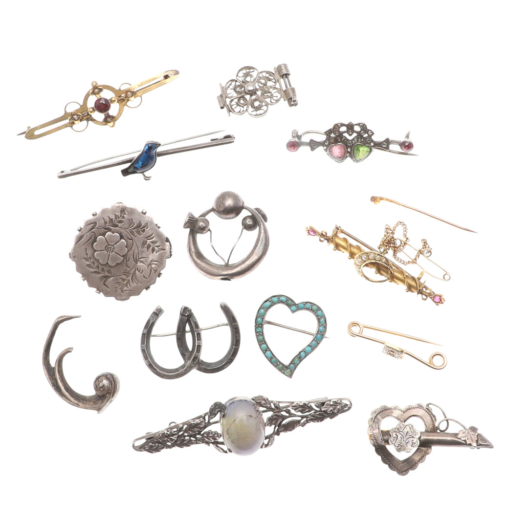 5001194. TRE GULDBROSCHER, SILVERFÖREMÅL ETC.