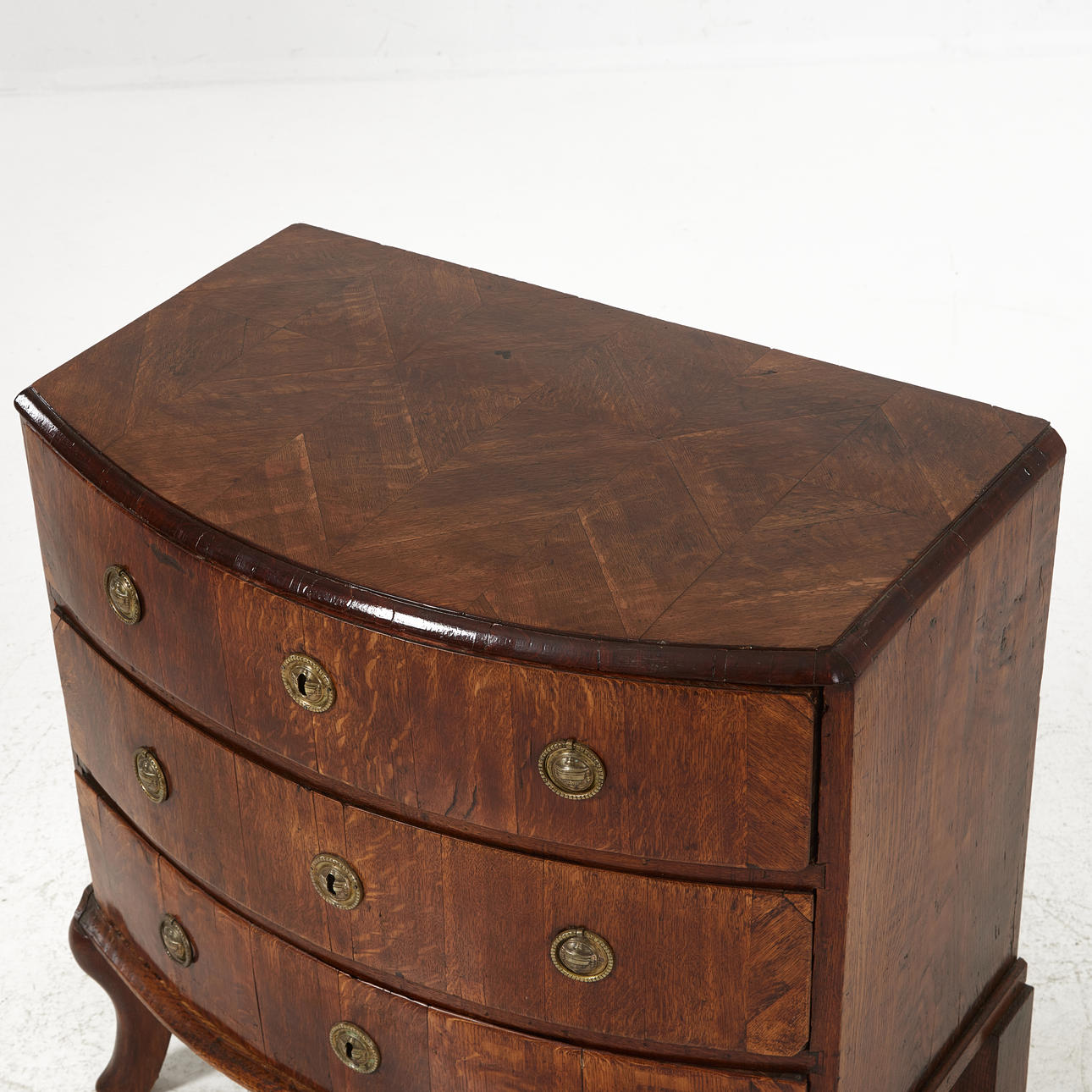 Bruks- och åldersrelaterat slitage, renoverad och kompletterad, senare ben, senare lås.