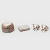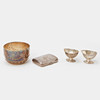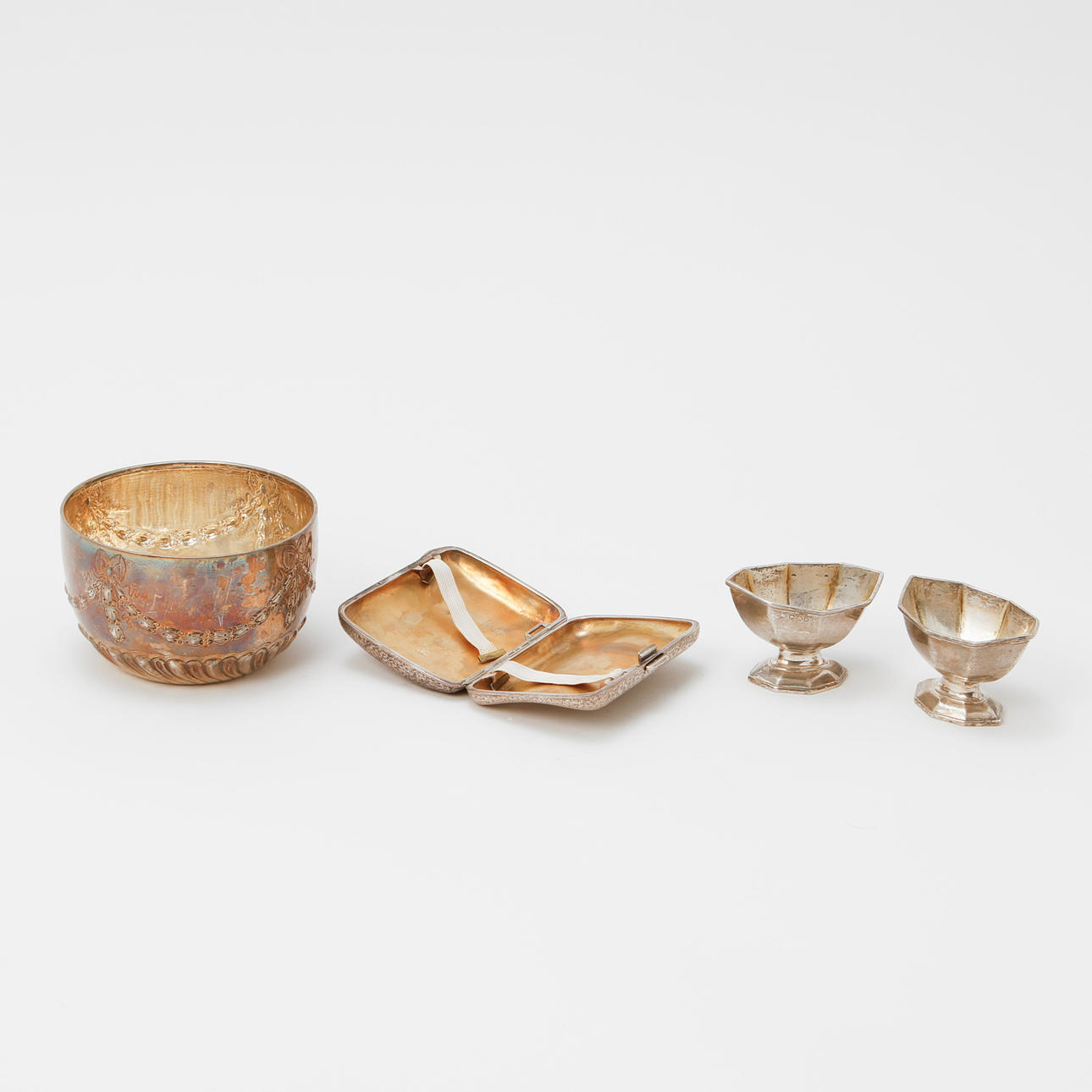1 par saltkar, skål och cigarettetui, höjd ca 2 - 6,5 cm.