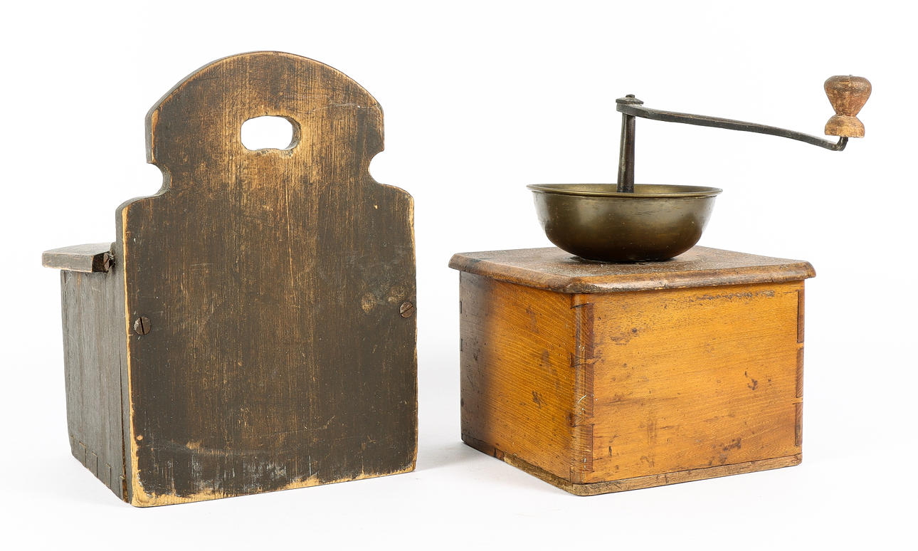 5001752. VÄGGKAR OCH KAFFEKVARN trä, 18/1900-tal.