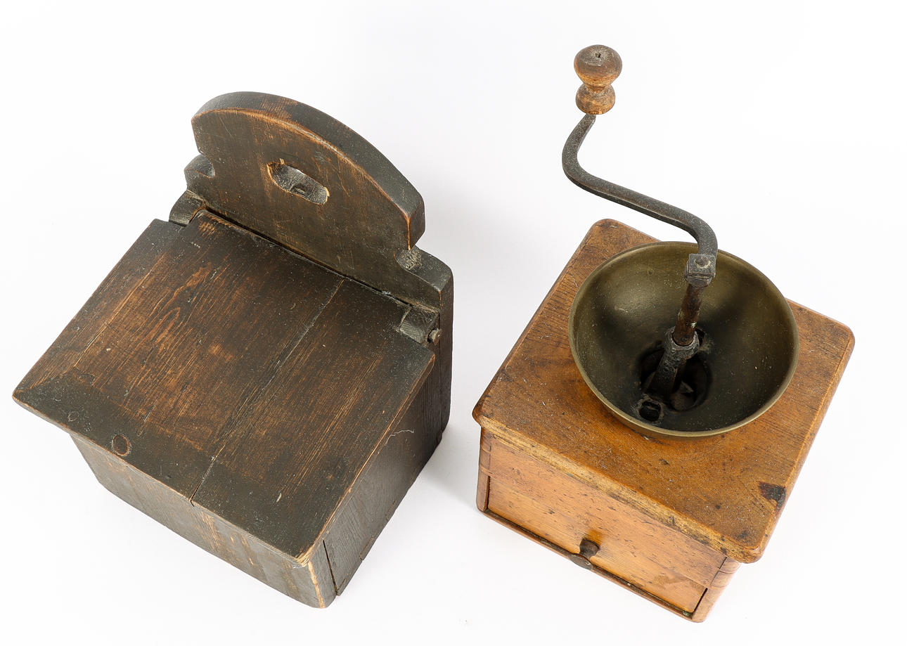 VÄGGKAR OCH KAFFEKVARN trä, 18/1900-tal.
