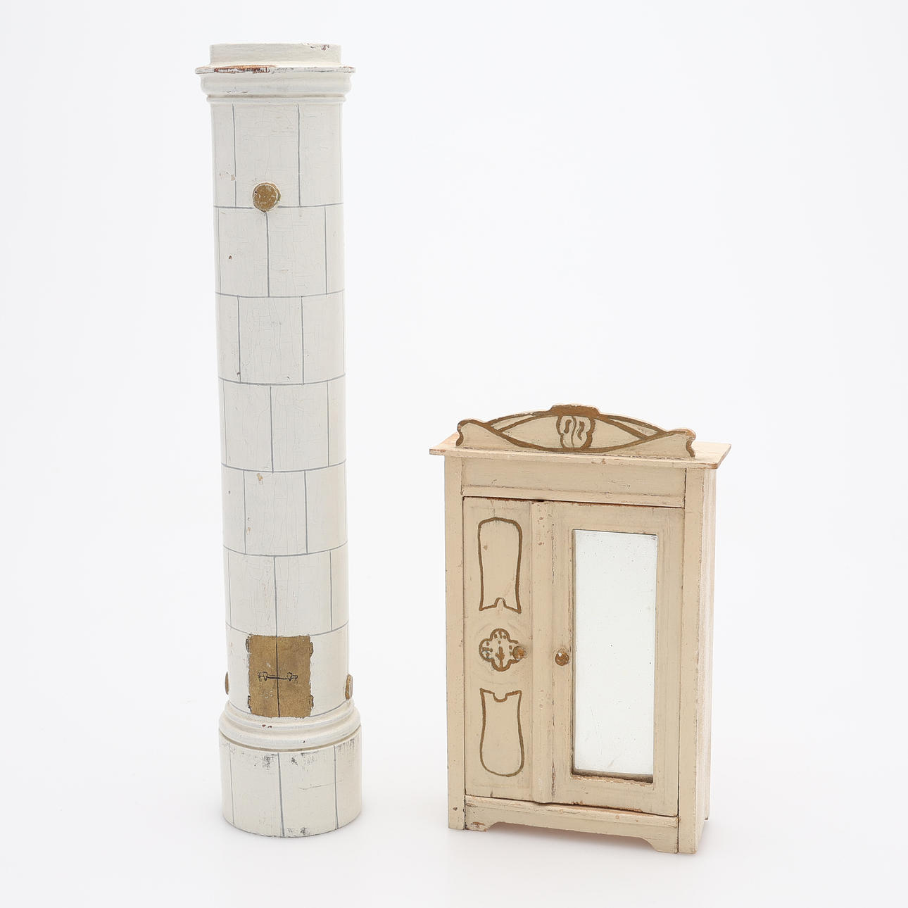 Kakelugn i trä, höjd 30 cm.