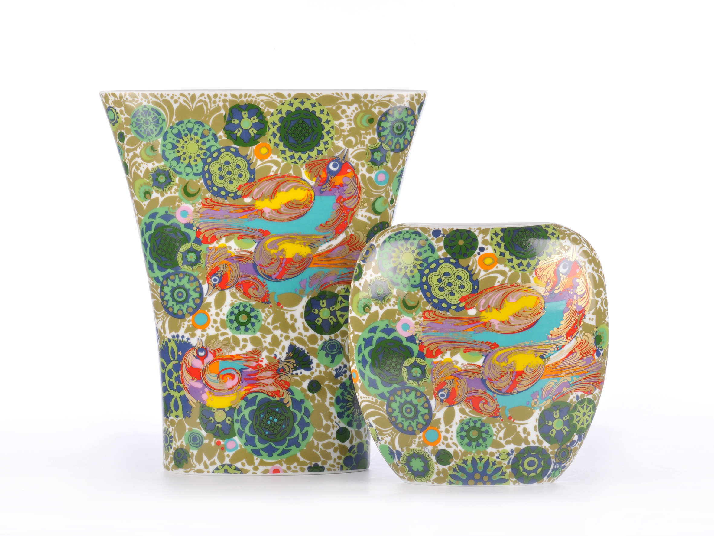 500193. BJÖRN WIINBLAD FÜR ROSENTHAL. ”Eldfågel.”2 långa smala vaser.
