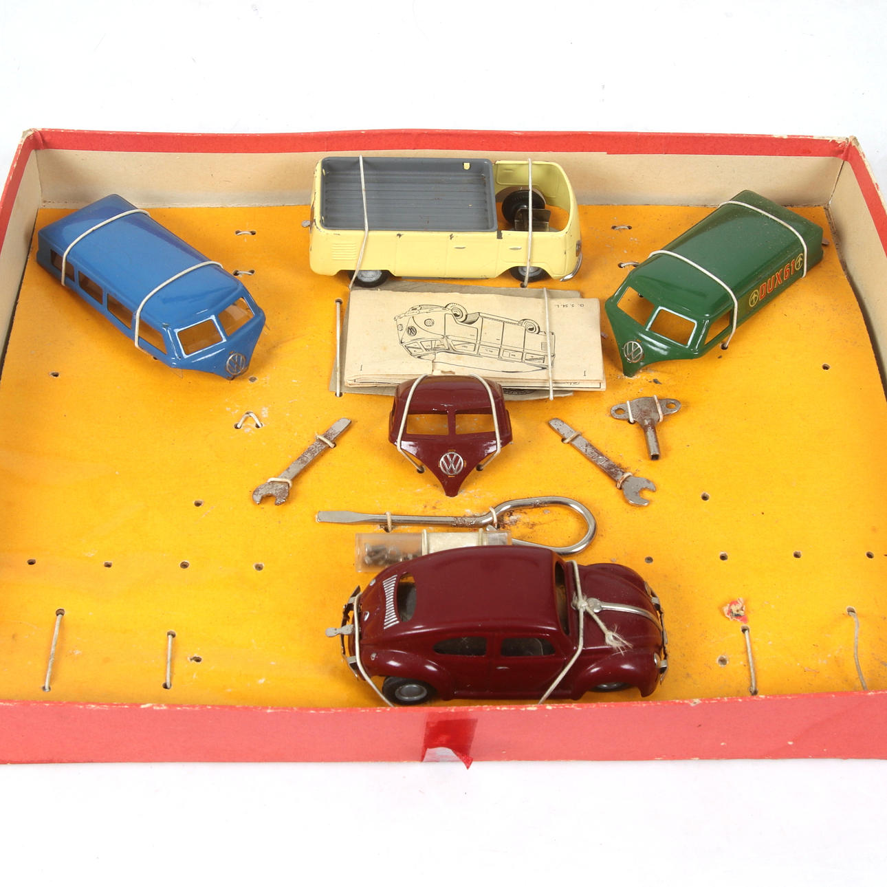 Kartong med skador, ej komplett, delar saknas.