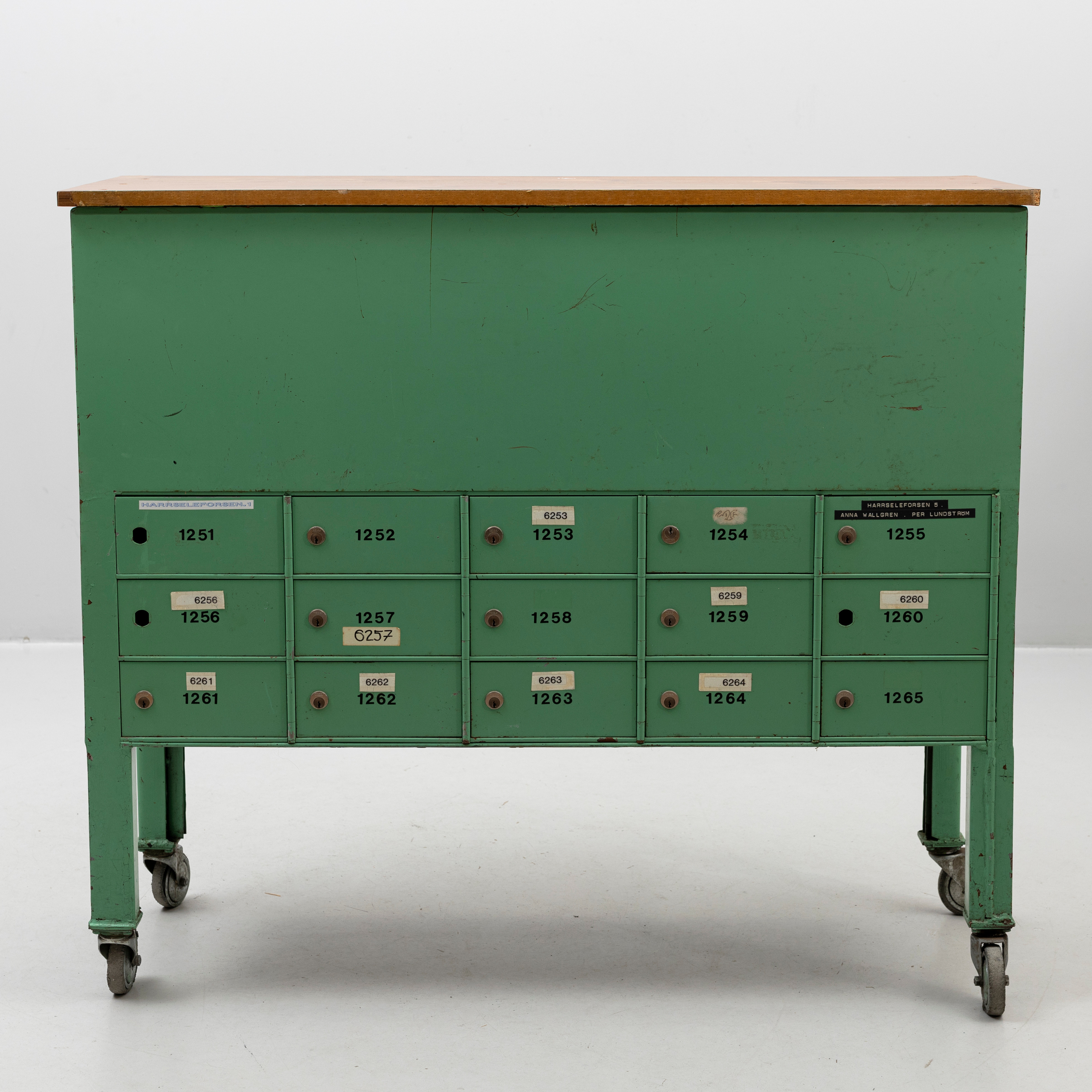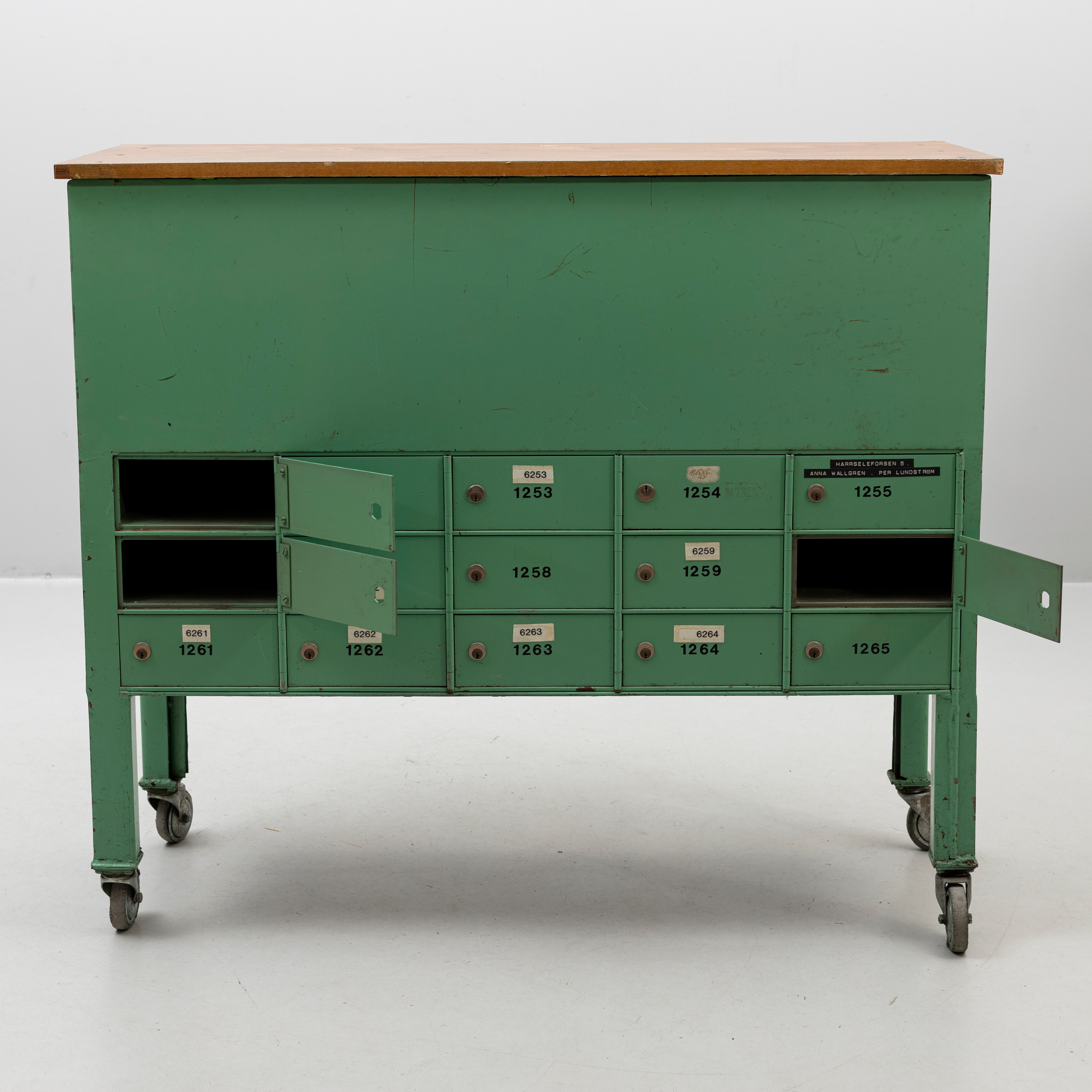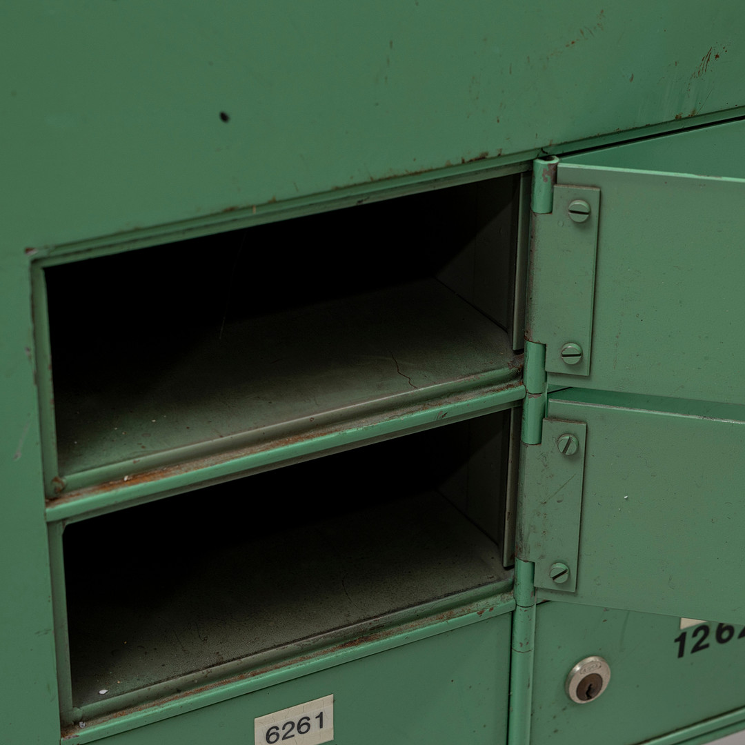 5002902. POSTSKÅP, grönlackerad metall, 1900-talets andra hälft.