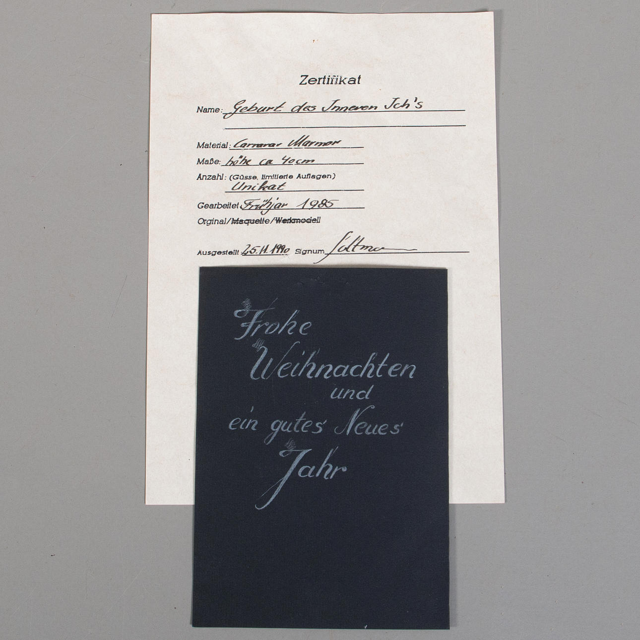 Enligt medföljande certifikat benämnd “Geburt des Inneren Ich’s”, unikat, utförd våren 1985.