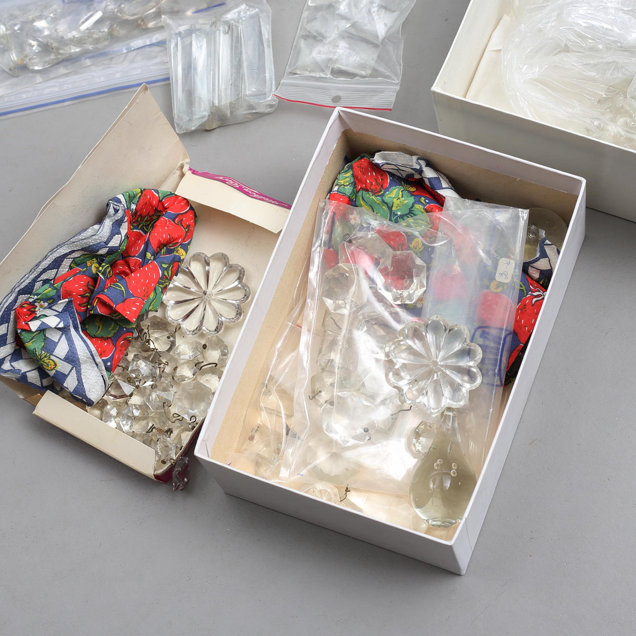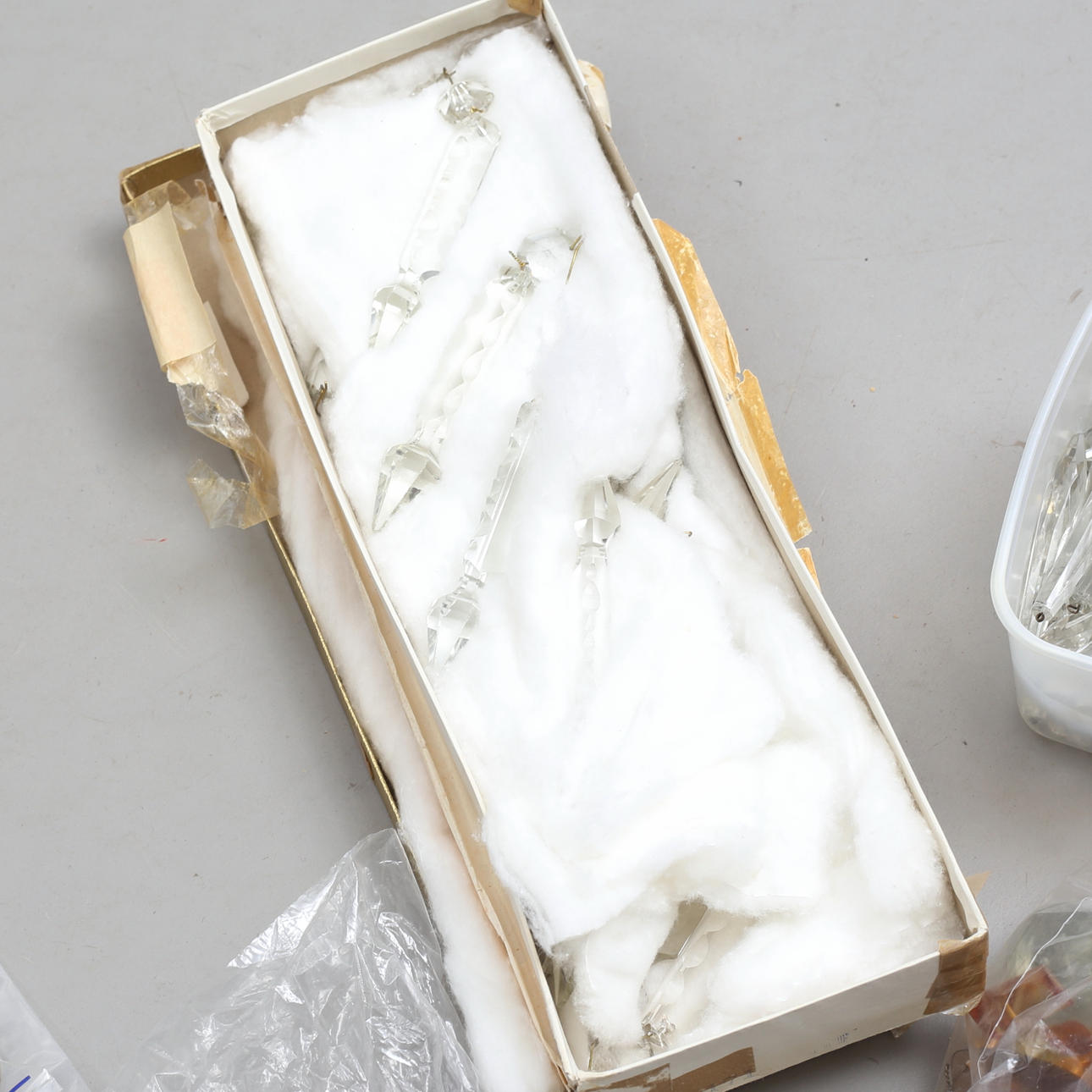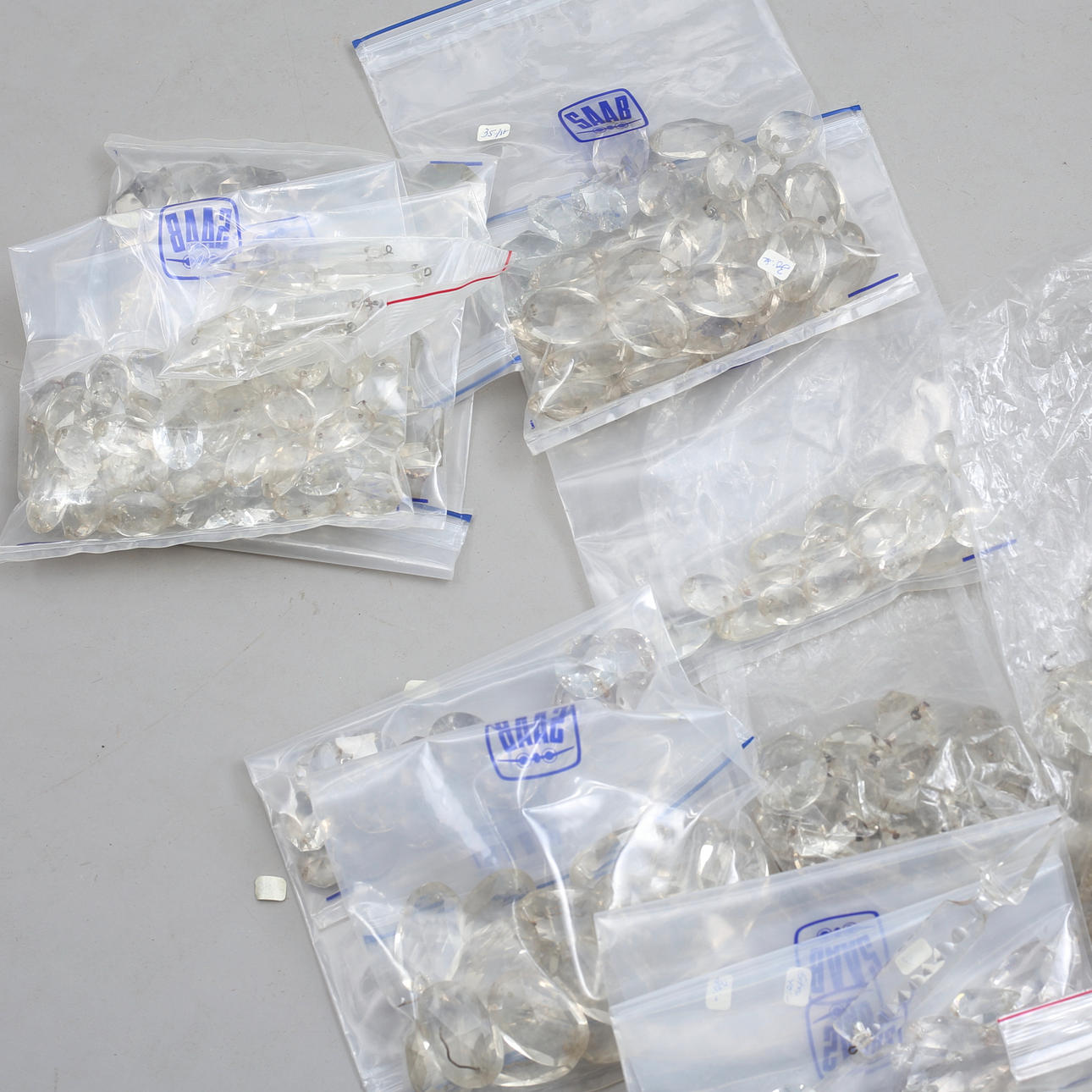 Blandat parti prismor, hängen, droppar, stavar.