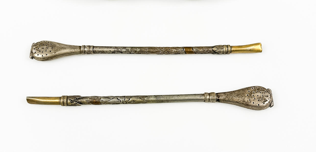 5003494. KALEBASS, ett par, med sugrör, Sydamerika.