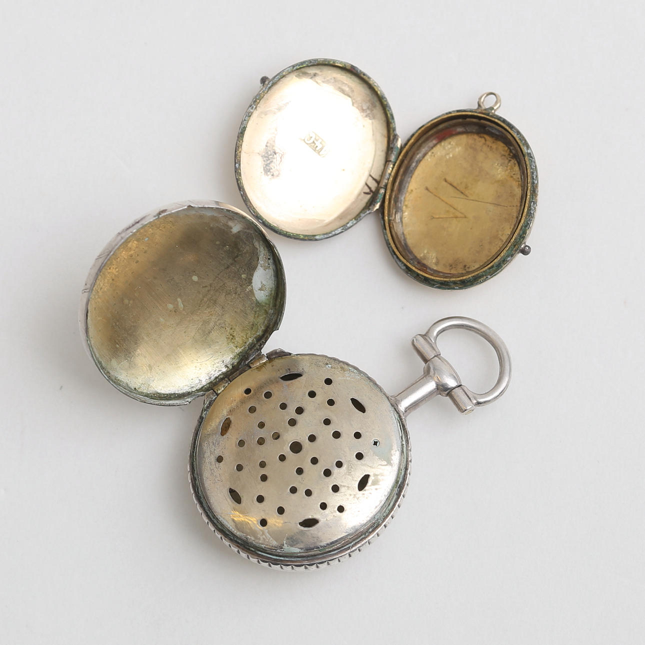 Fickur, inner samt ytterboett, silver, diameter ca 6 cm, vikt ca 124 gram