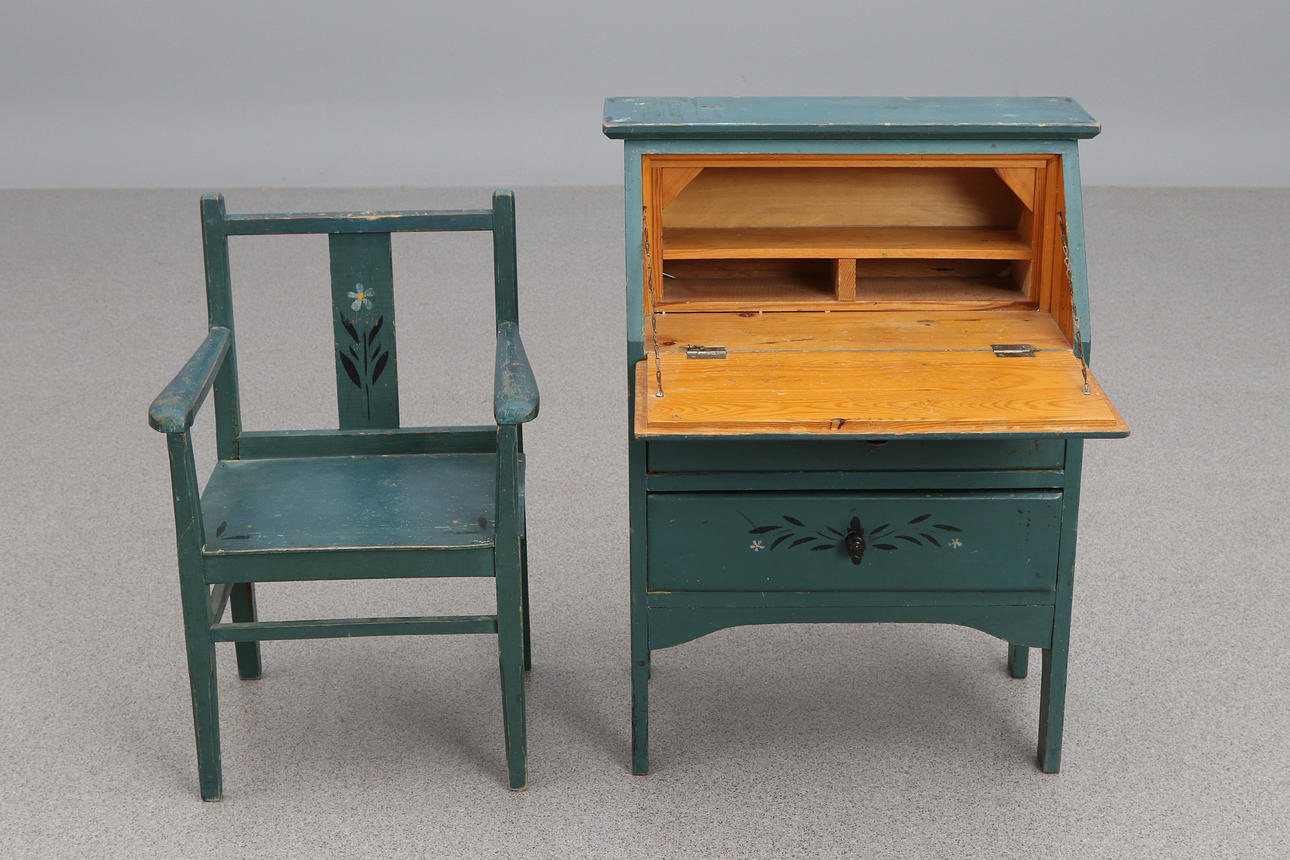 BARNMÖBLER, TVÅ DELAR. Bemålat trä. 1900-tal.
