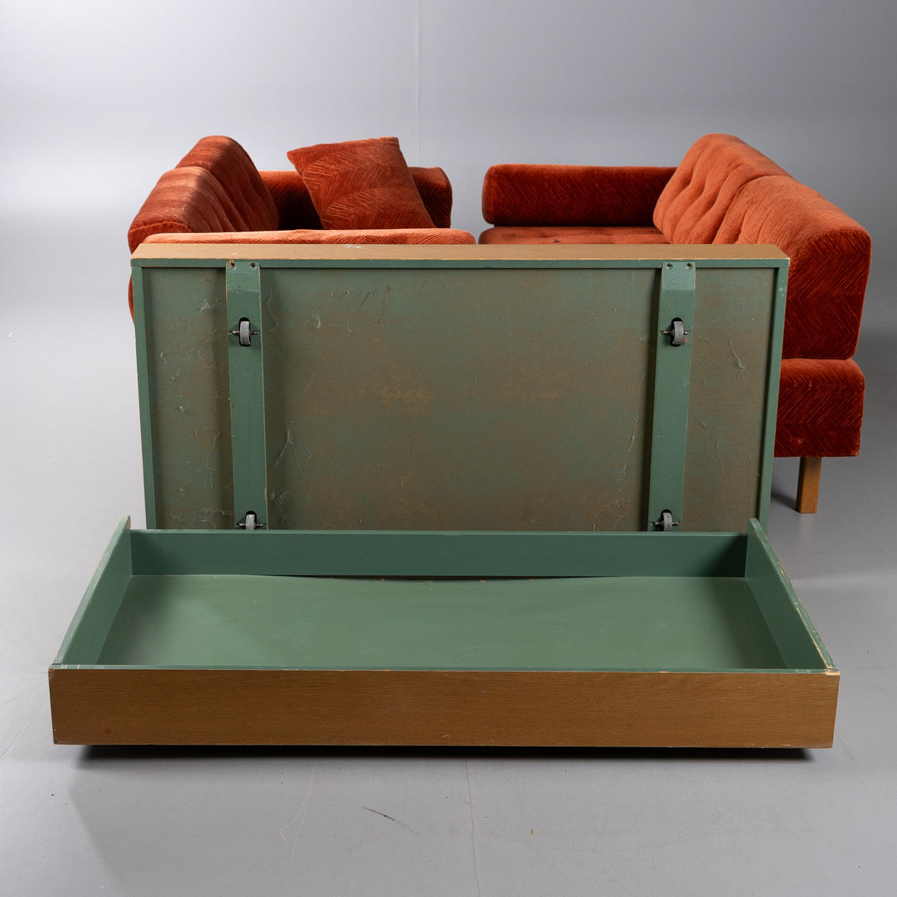 Vardera med förvaringslåda på hjul Höjder ca 51, 180 x 80 cm.