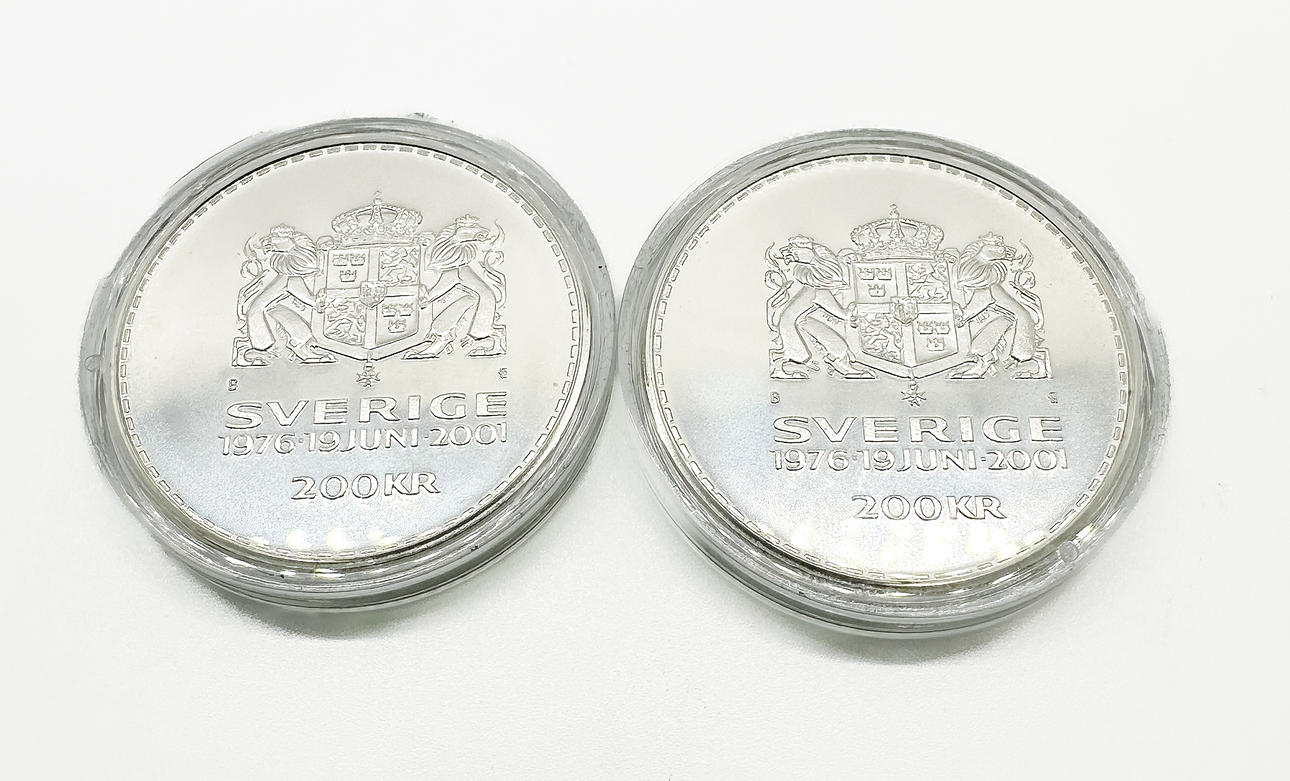 5004504. MINNESMYNT, 2 st, "200 kr", sterlingsilver, 2001.