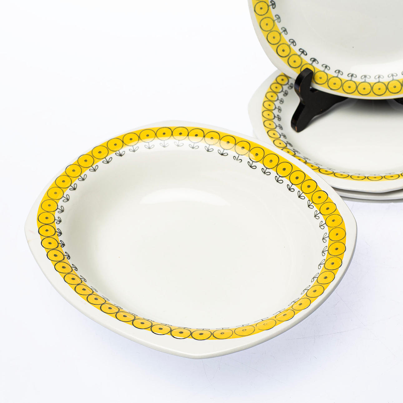 4st assietter diameter ca 18 cm 1st skål ca 23 x 19 cm.