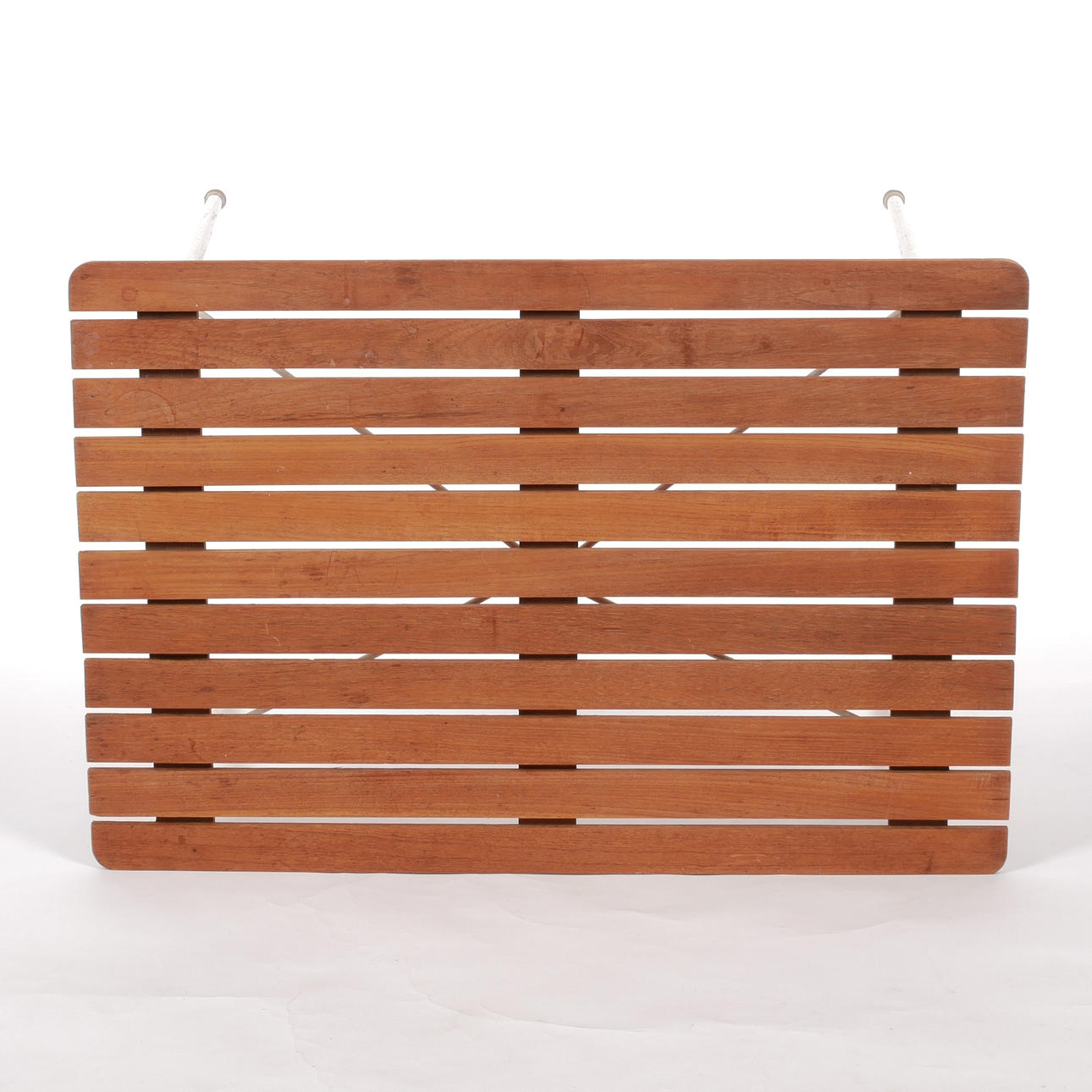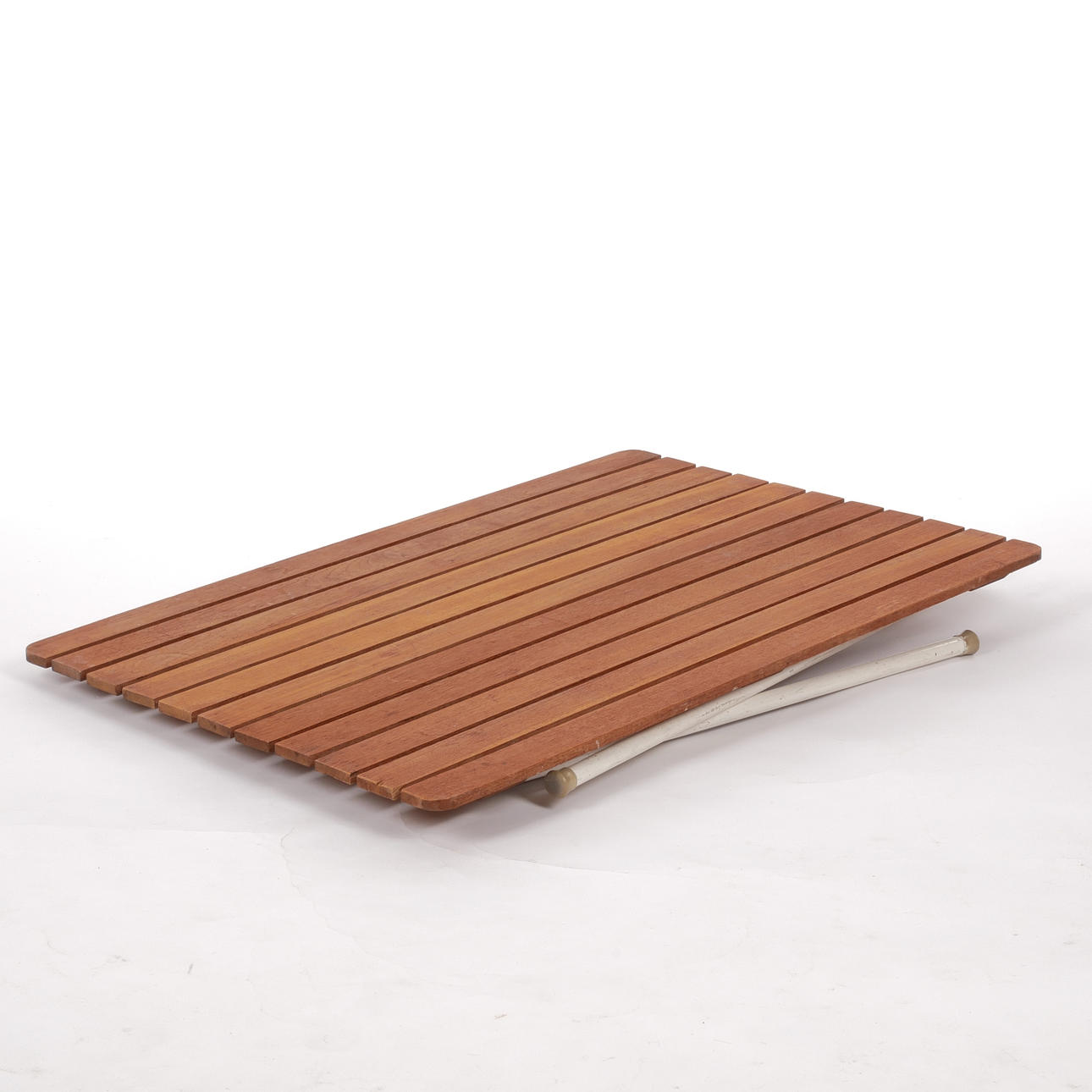 Vitlackerat stålrör med ribbat trä i teak.