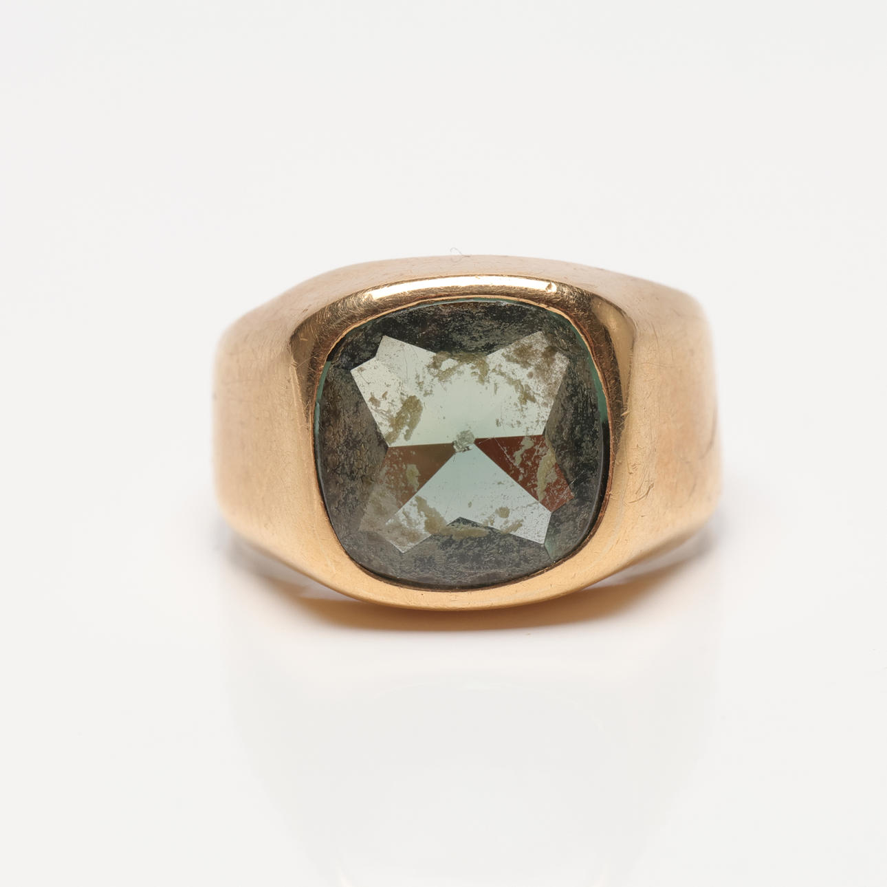 5005654. RING med grön sten, 18k guld, vikt ca 3,9 g.