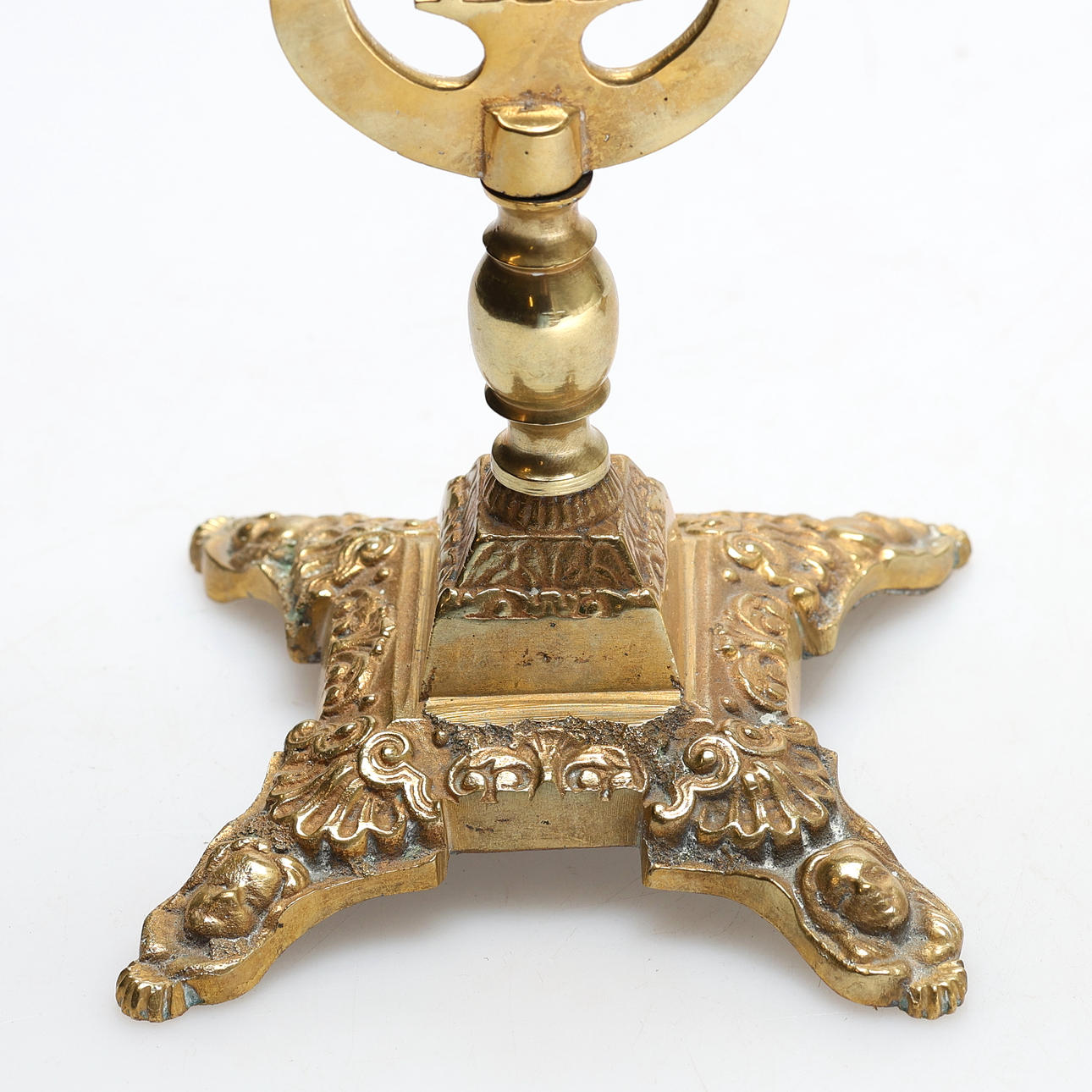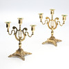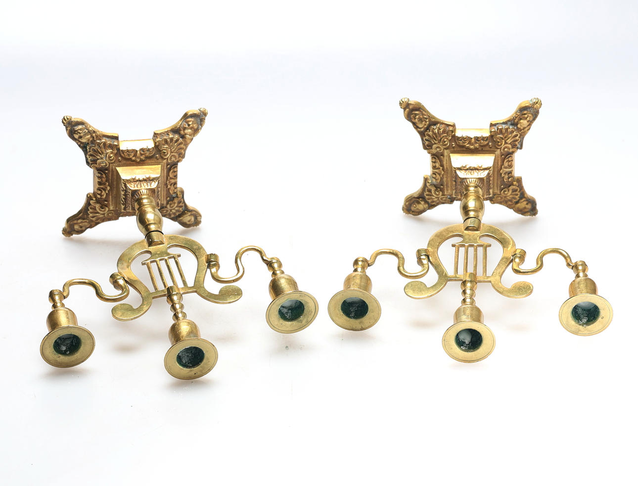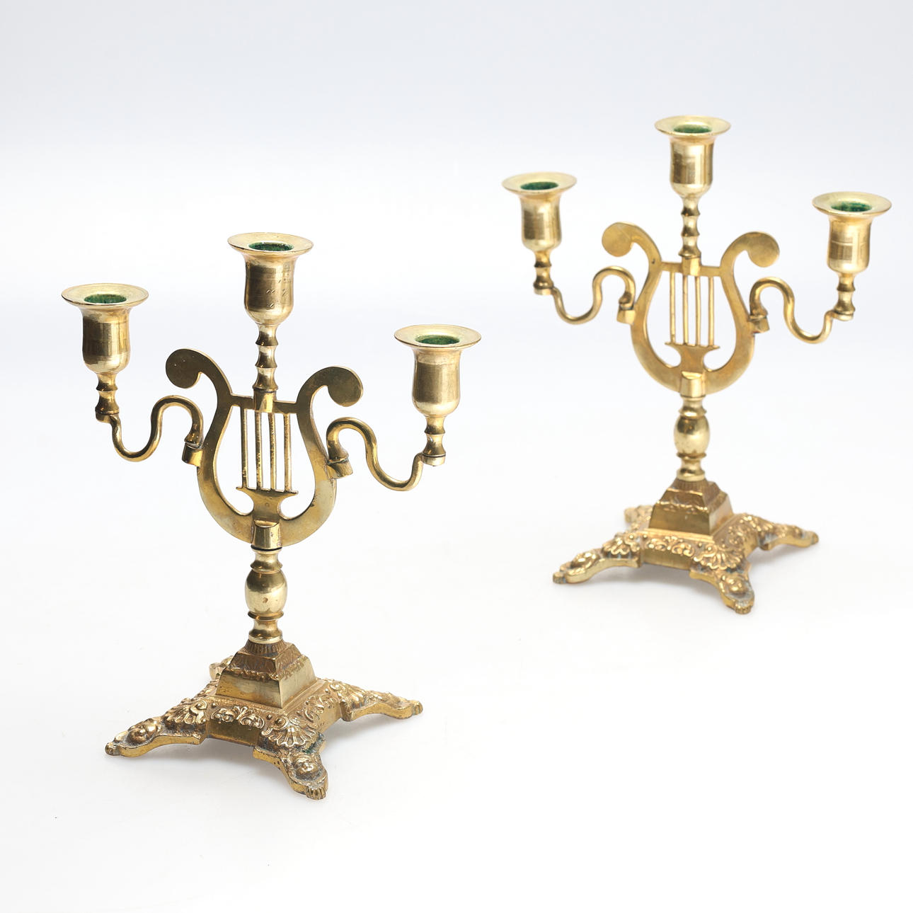 Kandelabrar i form av lyra med utsmyckad bas. Höjd ca 26,5 cm, bredd ca 23 cm.