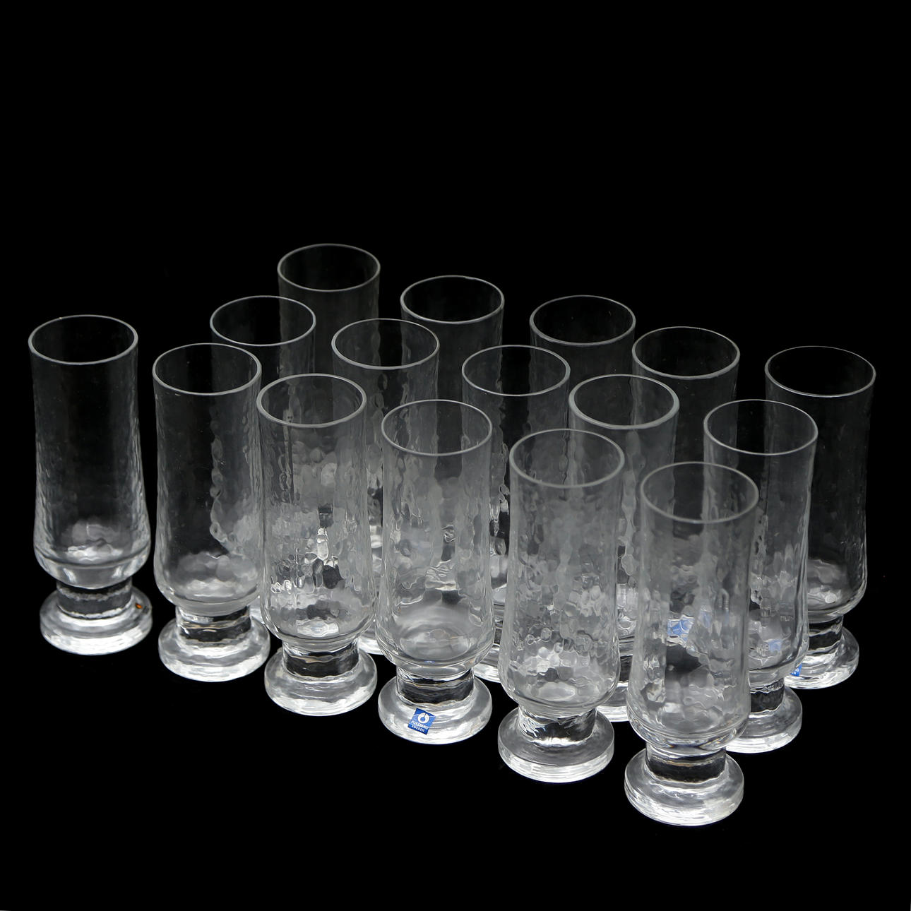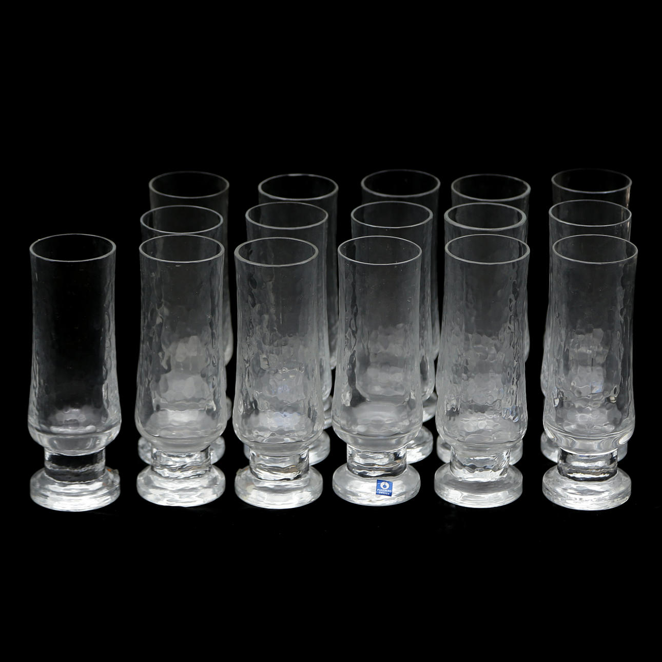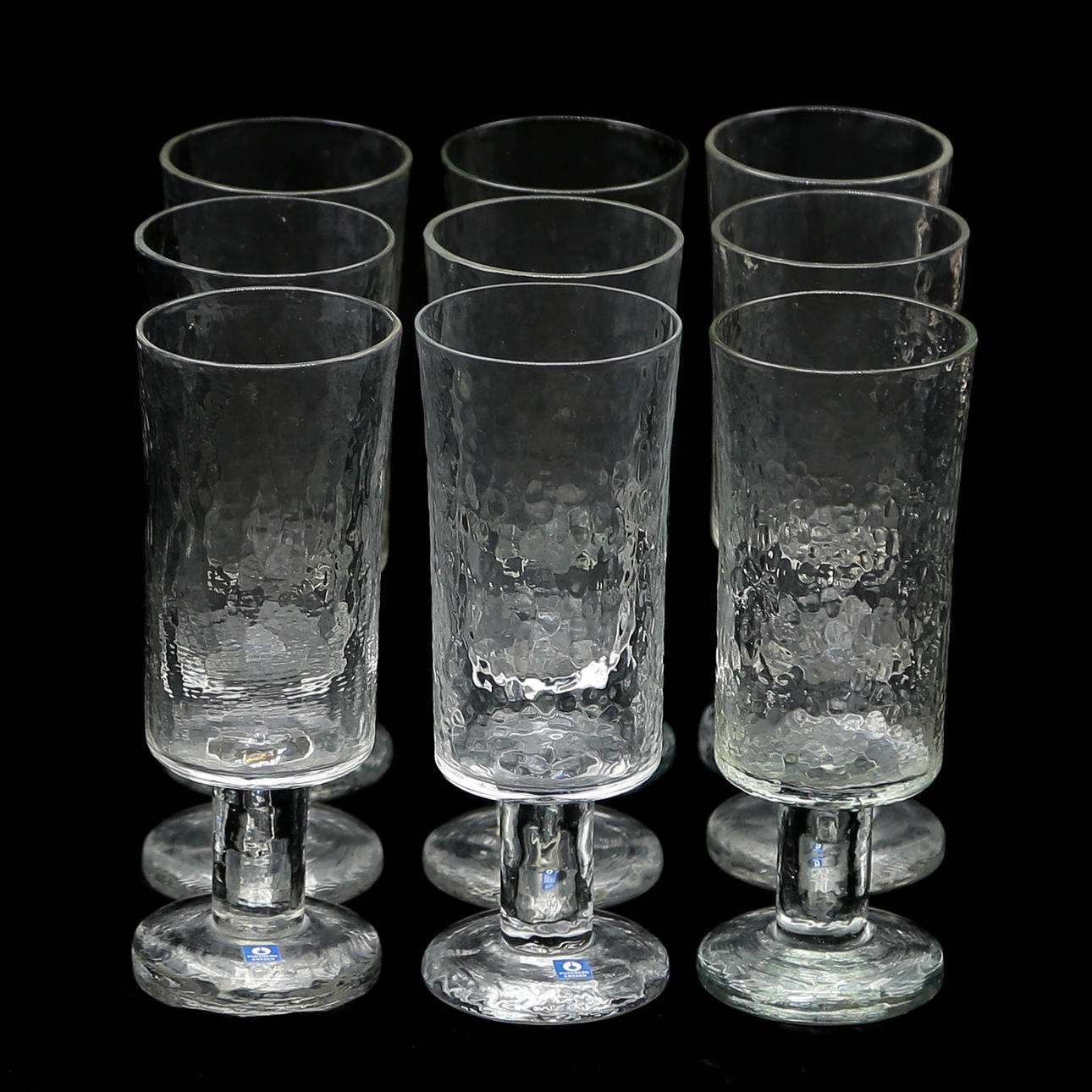 9 Ölglas höjd 19,5, diam 7 cm 16 Champagneglas höjd 15,5, diam 5 cm.