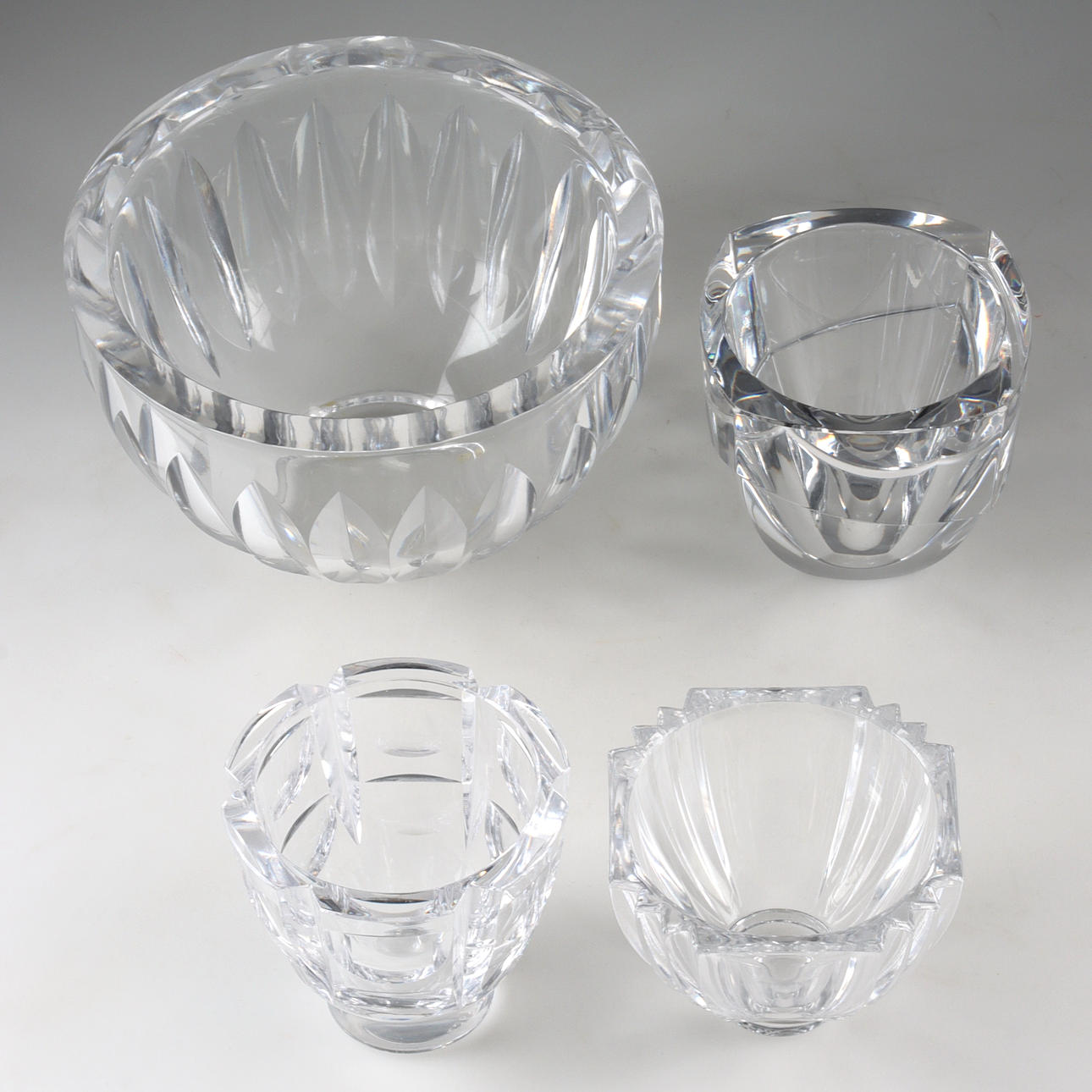 Skål, skålar i glas, 4 stycken, bland annat Orrefors och Kosta. Glasskål, konstglas, kristall. 1900-tal.