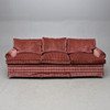 Textilklädsel. Lösa dunplymåer i rygg och sits. Längd ca 235, bredd 85, höjd 72. Sitthöjd ca 46 cm.