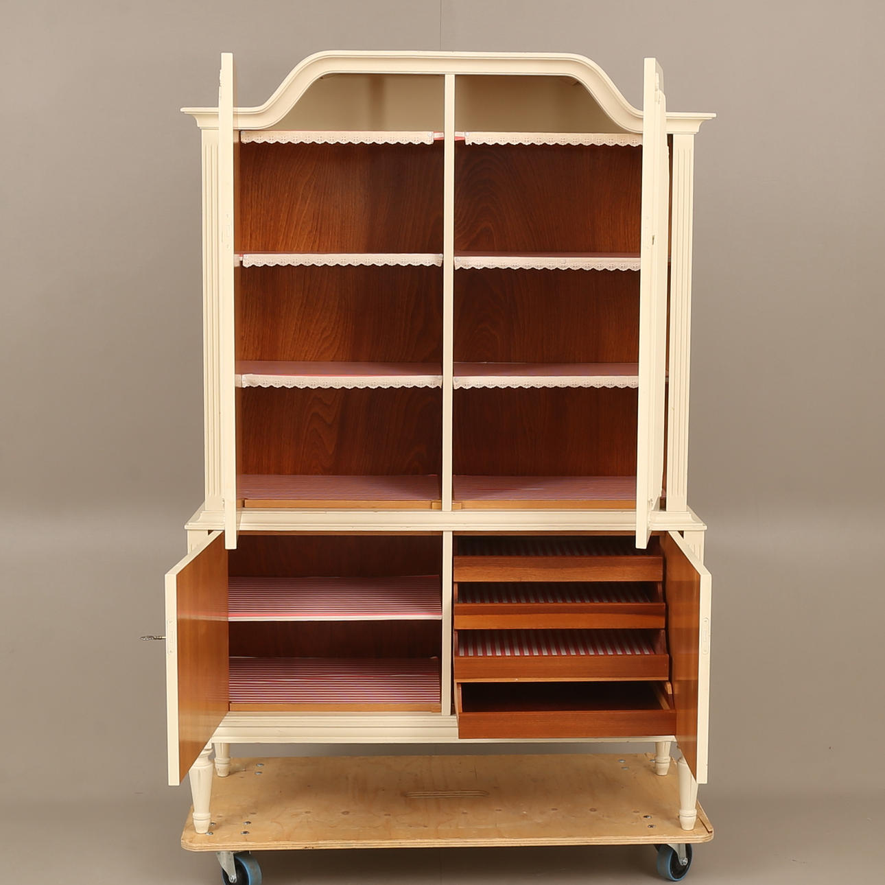Dekor med räfflade dörrar. Höjd cirka 172 cm, cirka 114 x 44 cm.