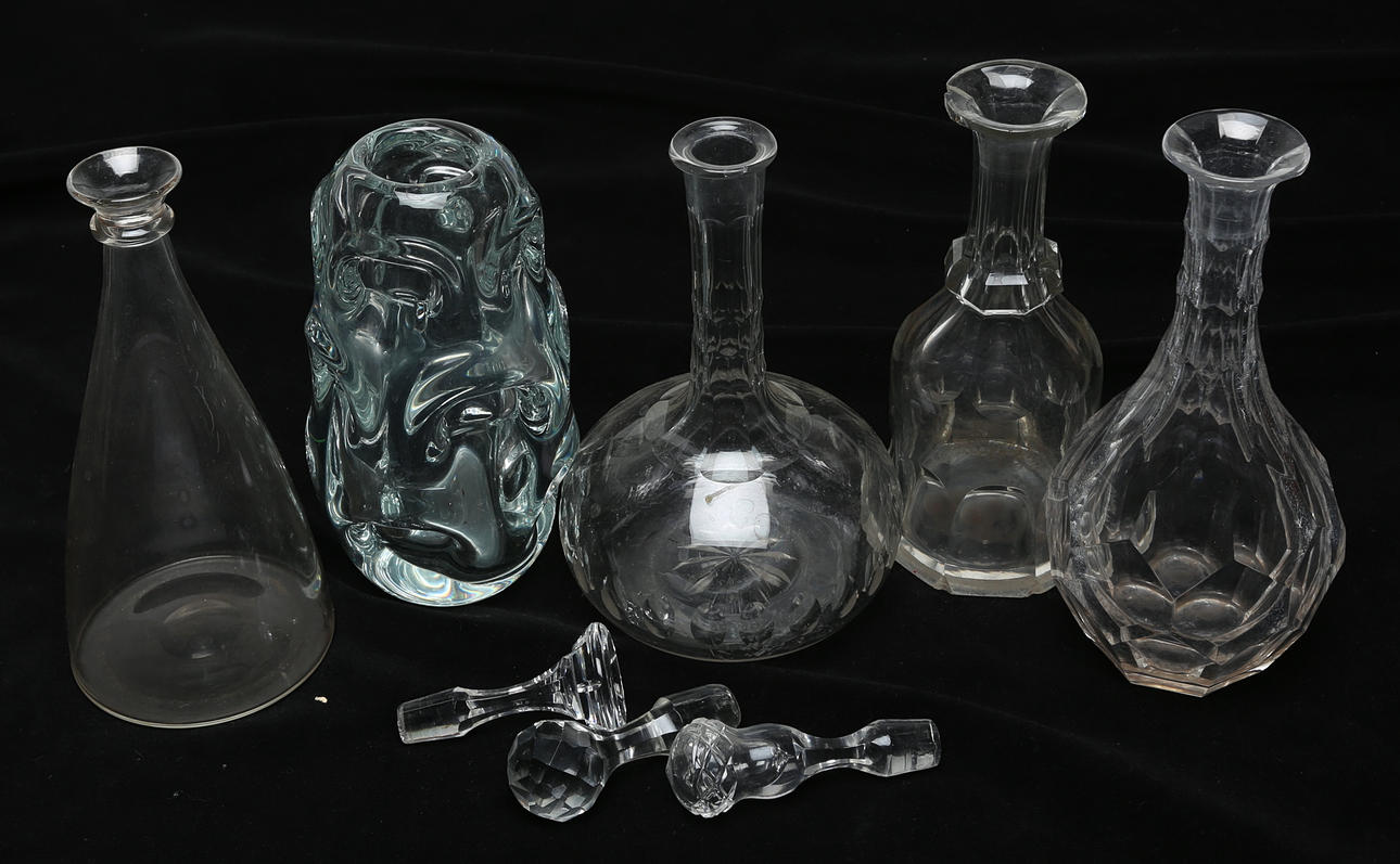 KARAFFER och VAS, totalt 5 delar, glas.